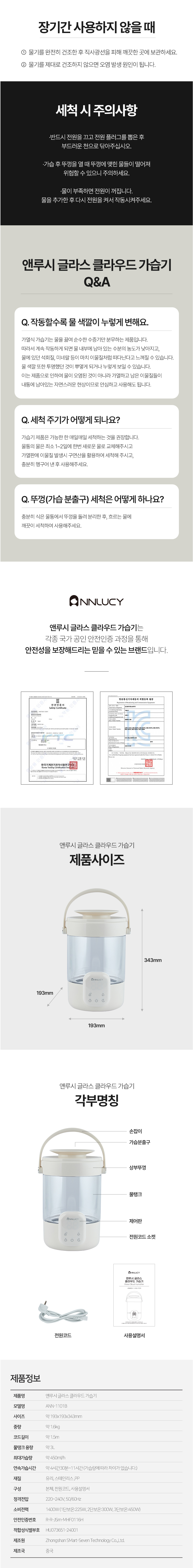 [앤루시] 글라스 클라우드 가습기 / ANN-1101B