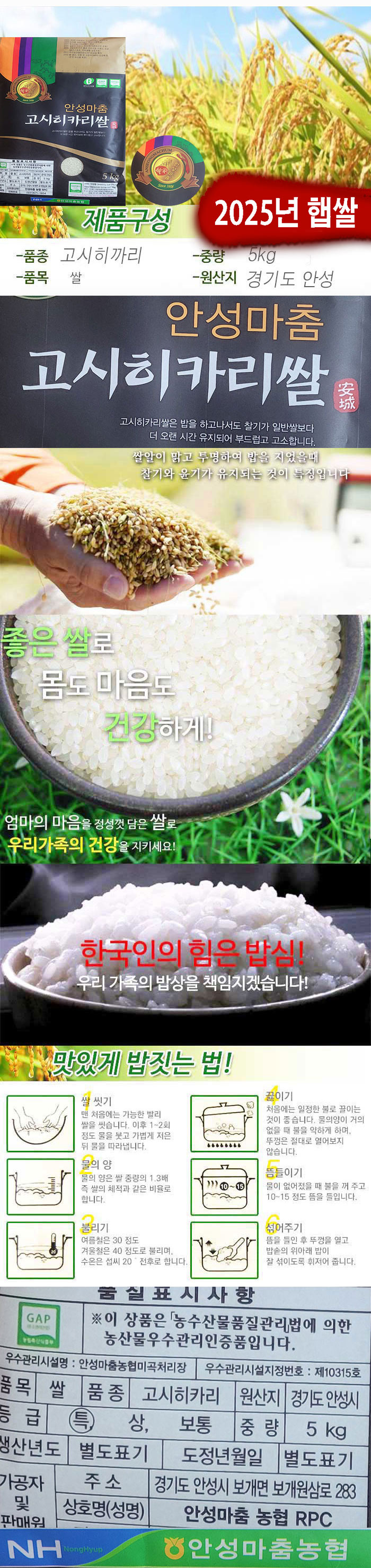[ 2025년 햅쌀] 경기도 안성농협 고시히까리5kg