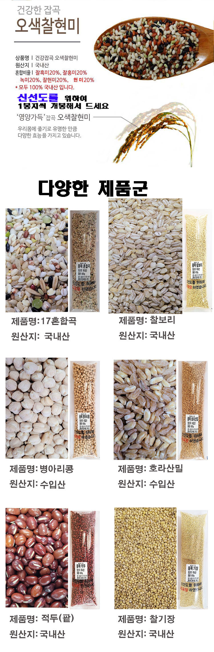 오색찰현미800g 귀리700g 서리태700g 찰흑미800g 검정보리800g