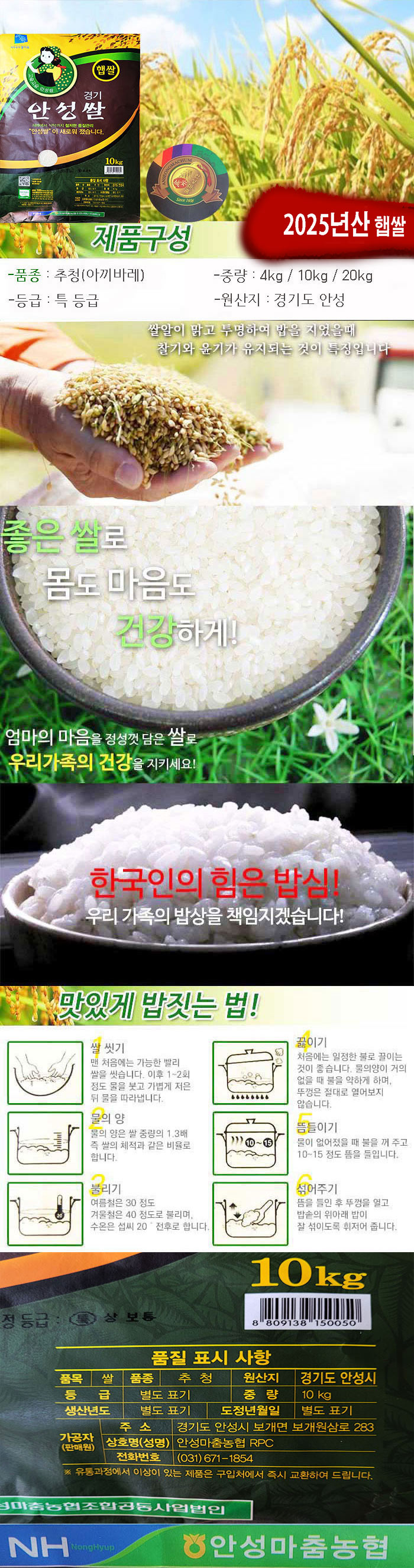 25년산 햅쌀 안성농협 안성쌀(추청벼) 10kg