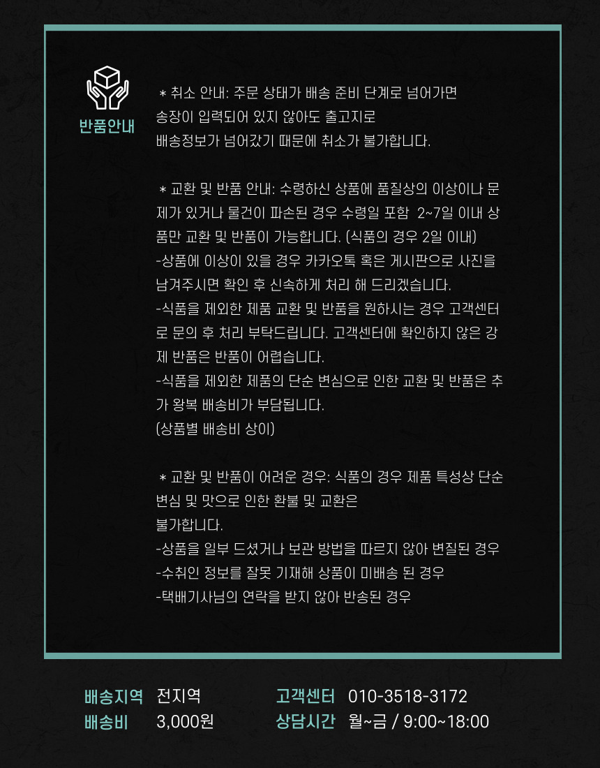 구매/배송 ※ 상품정보에 별도 기재된 경우, 아래의 내용보다 우선하여 적용됩니다.