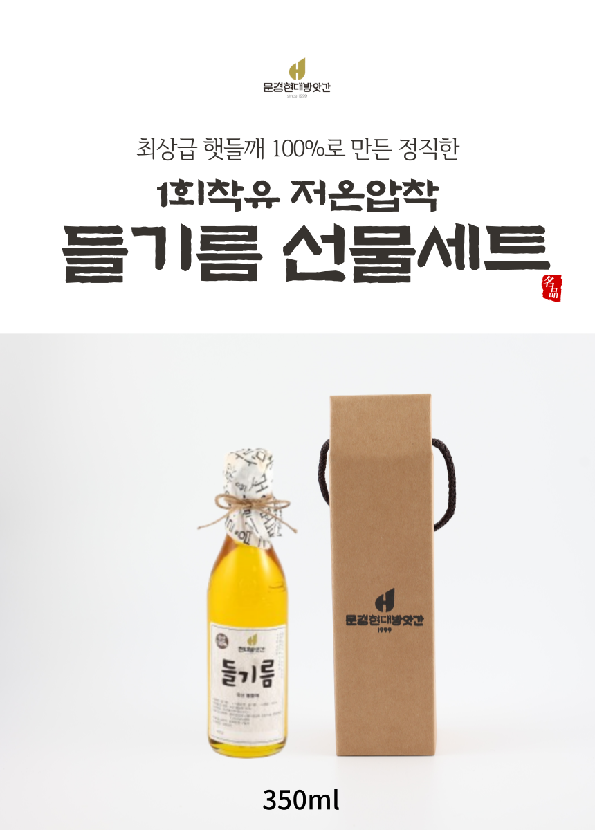 ][문경현대방앗간]국산 햇 들깨 저온압착 들기름 1구 선물세트 350ml