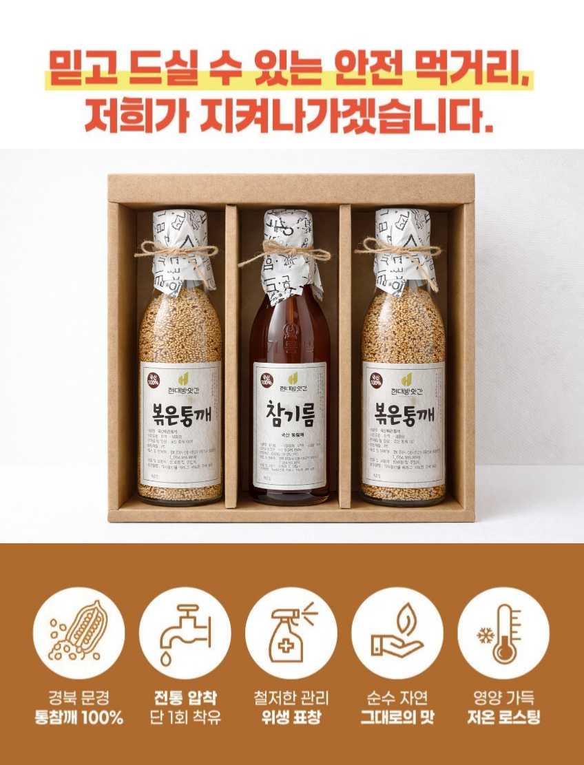 [복사]   [문경현대방앗간]100% 국산 참기름 볶은참깨  볶은참깨 3구선물세트 350ml
