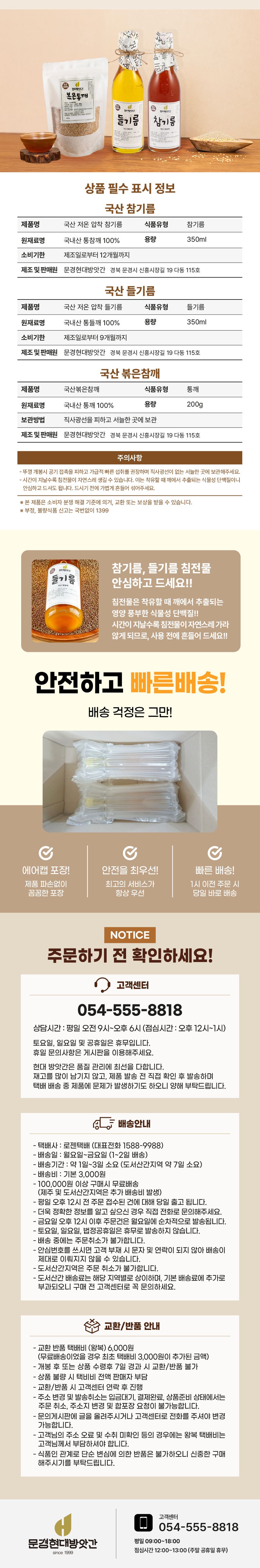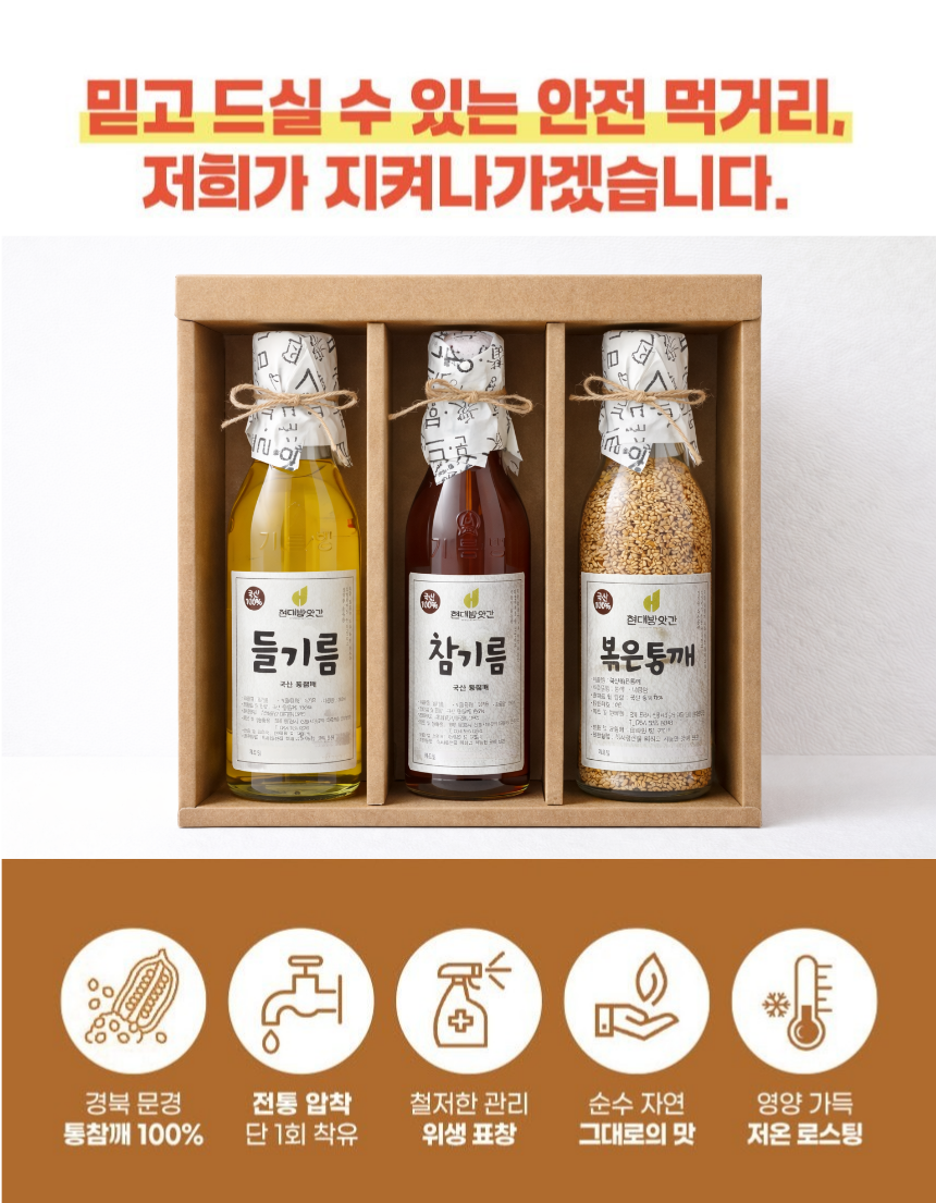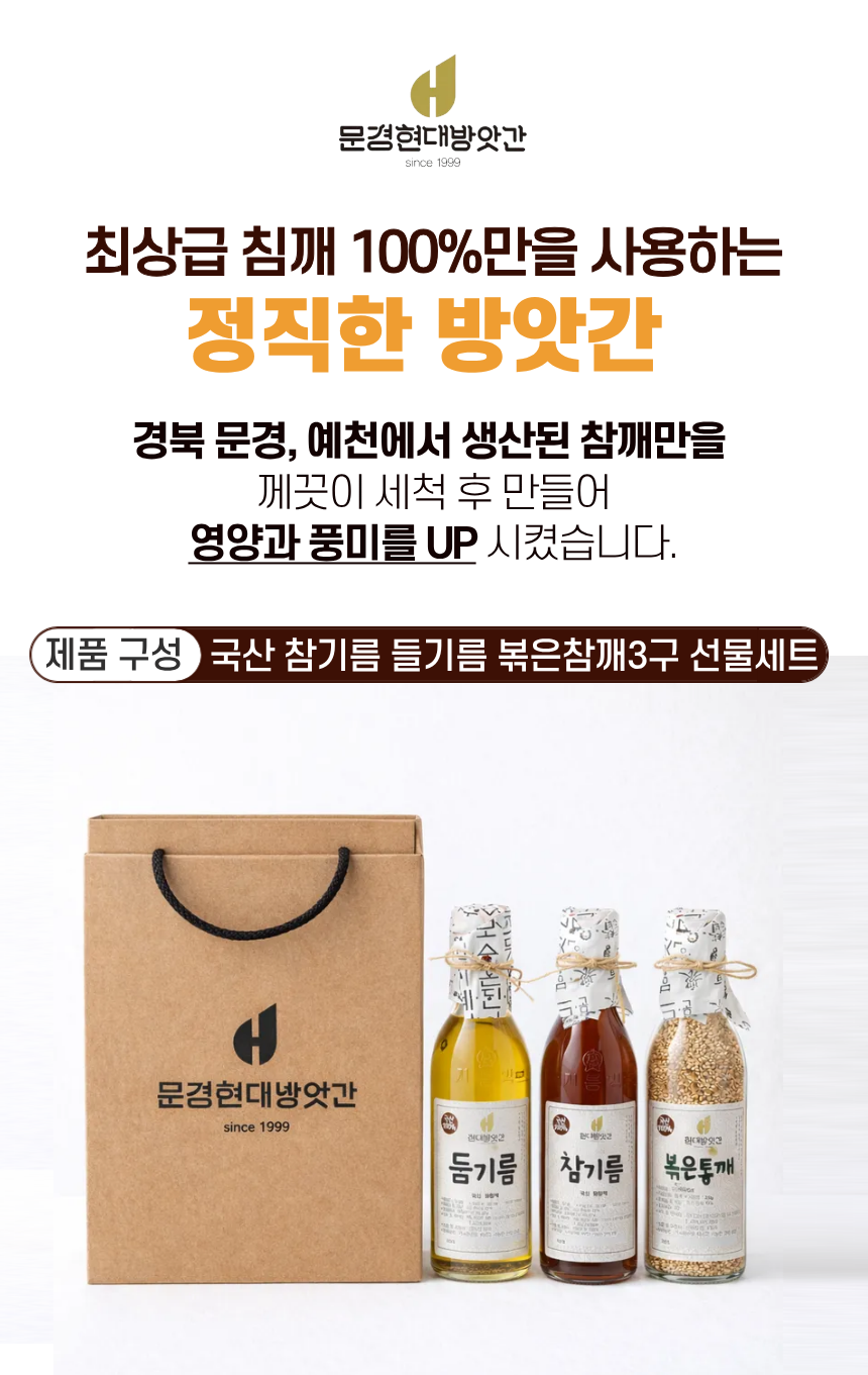 [문경현대방앗간]국산 참기름+들기름+볶은참깨 3구 선물세트