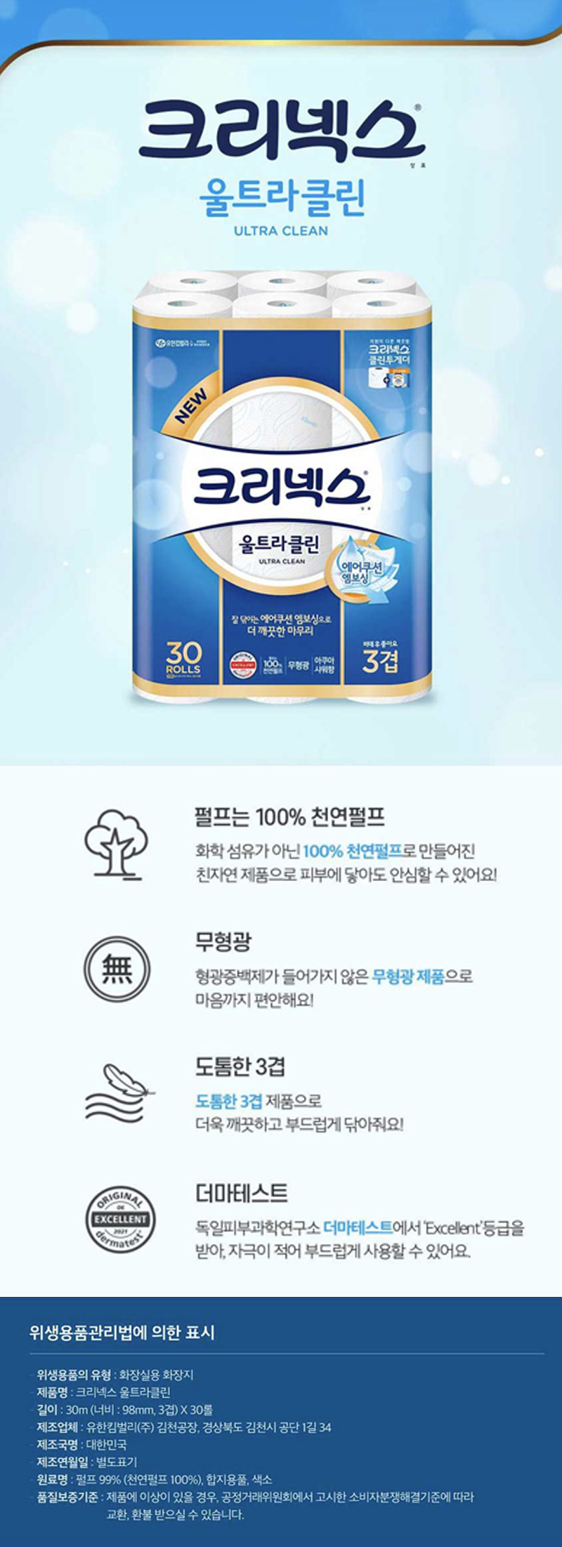 크리넥스 3겹 화장지 울트라클린 25m30롤