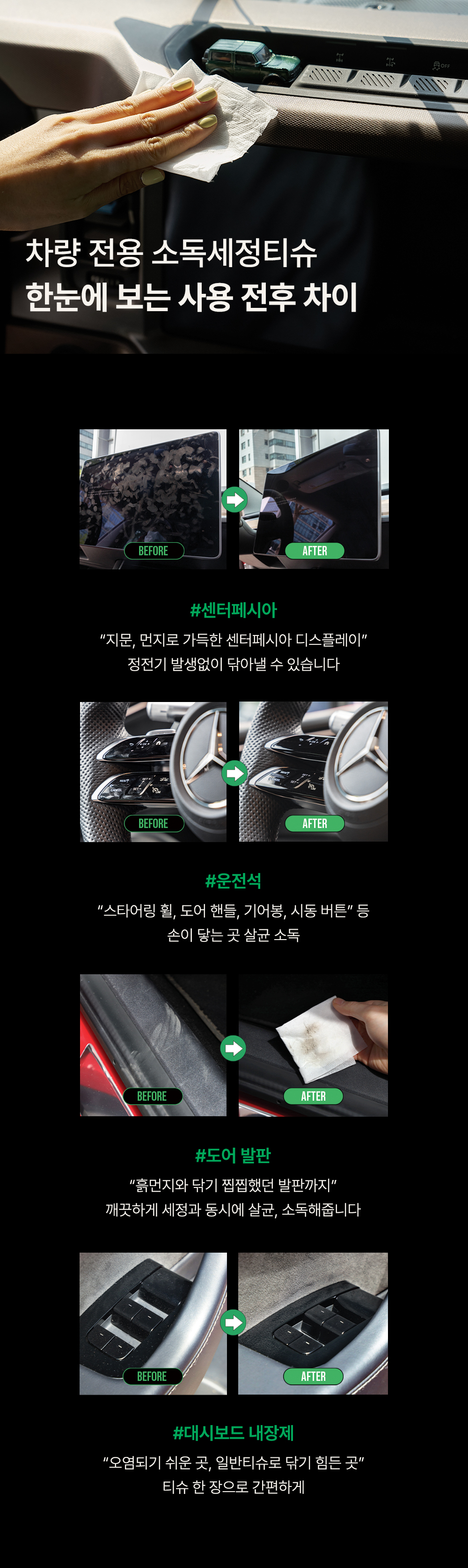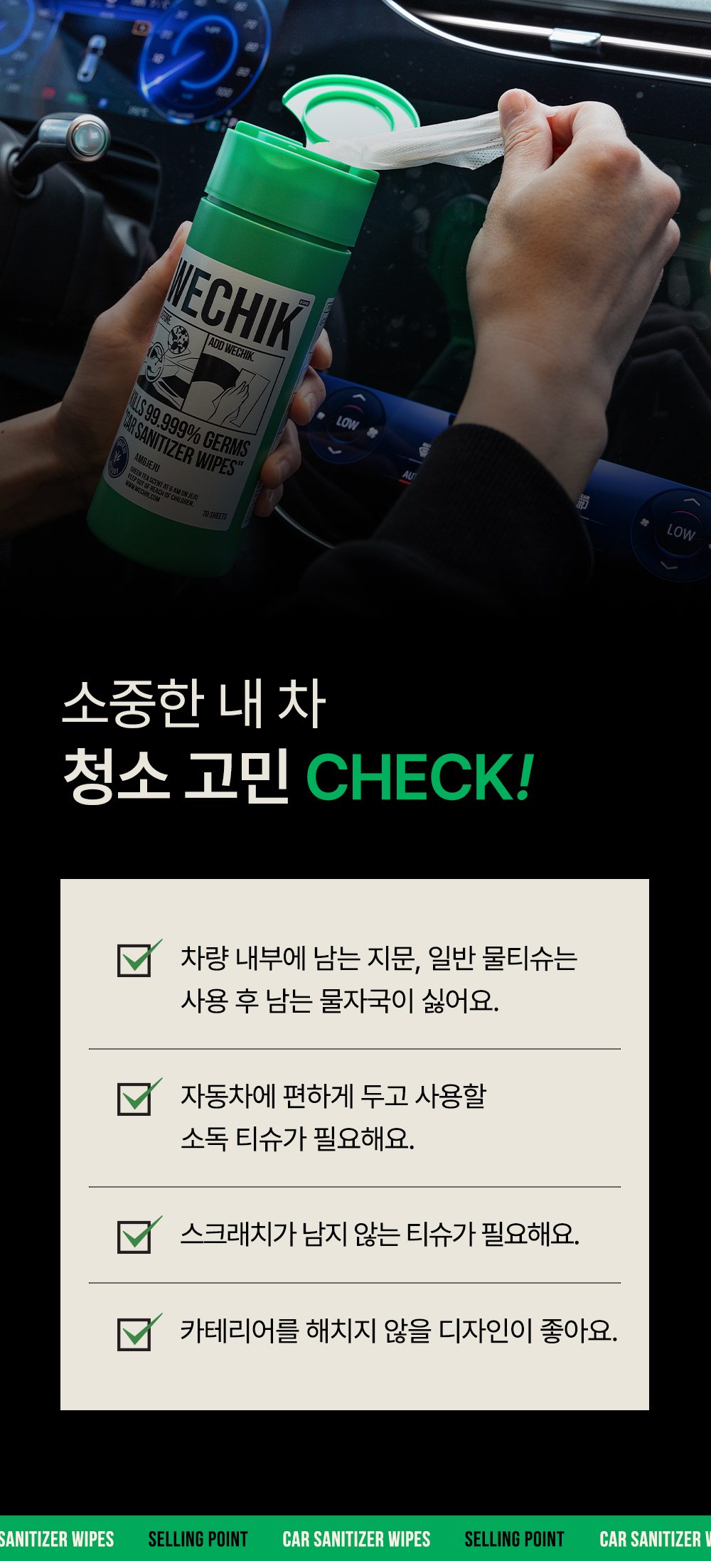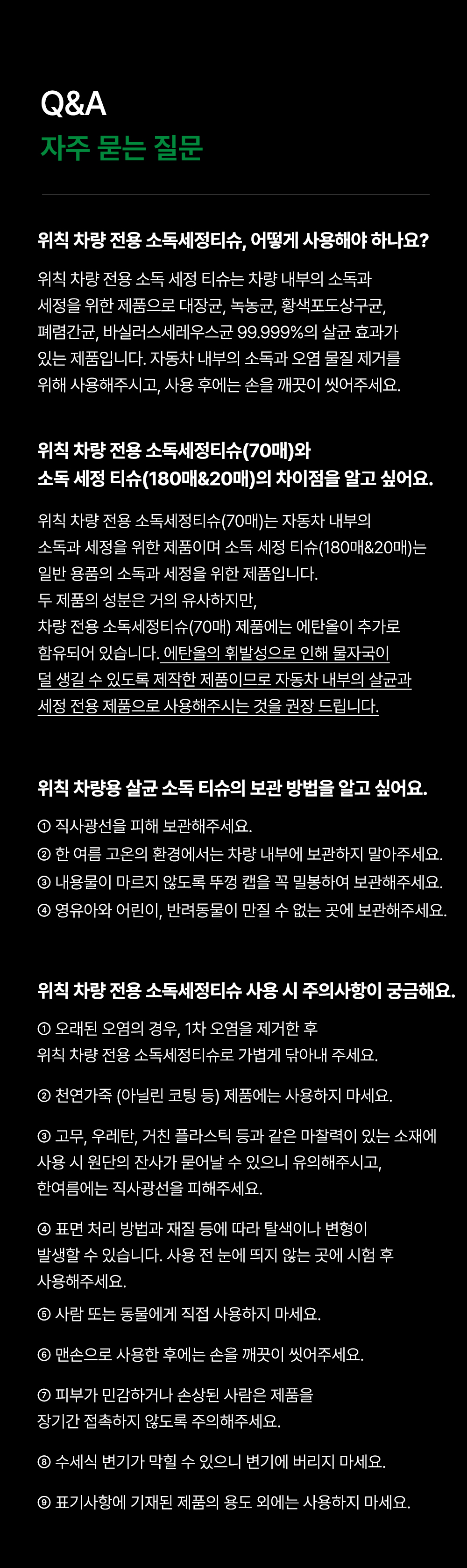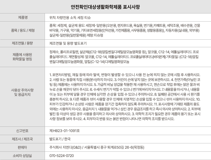 [특별할인] [위칙] 차량 전용 소독 세정티슈 70매 3개입 선물세트