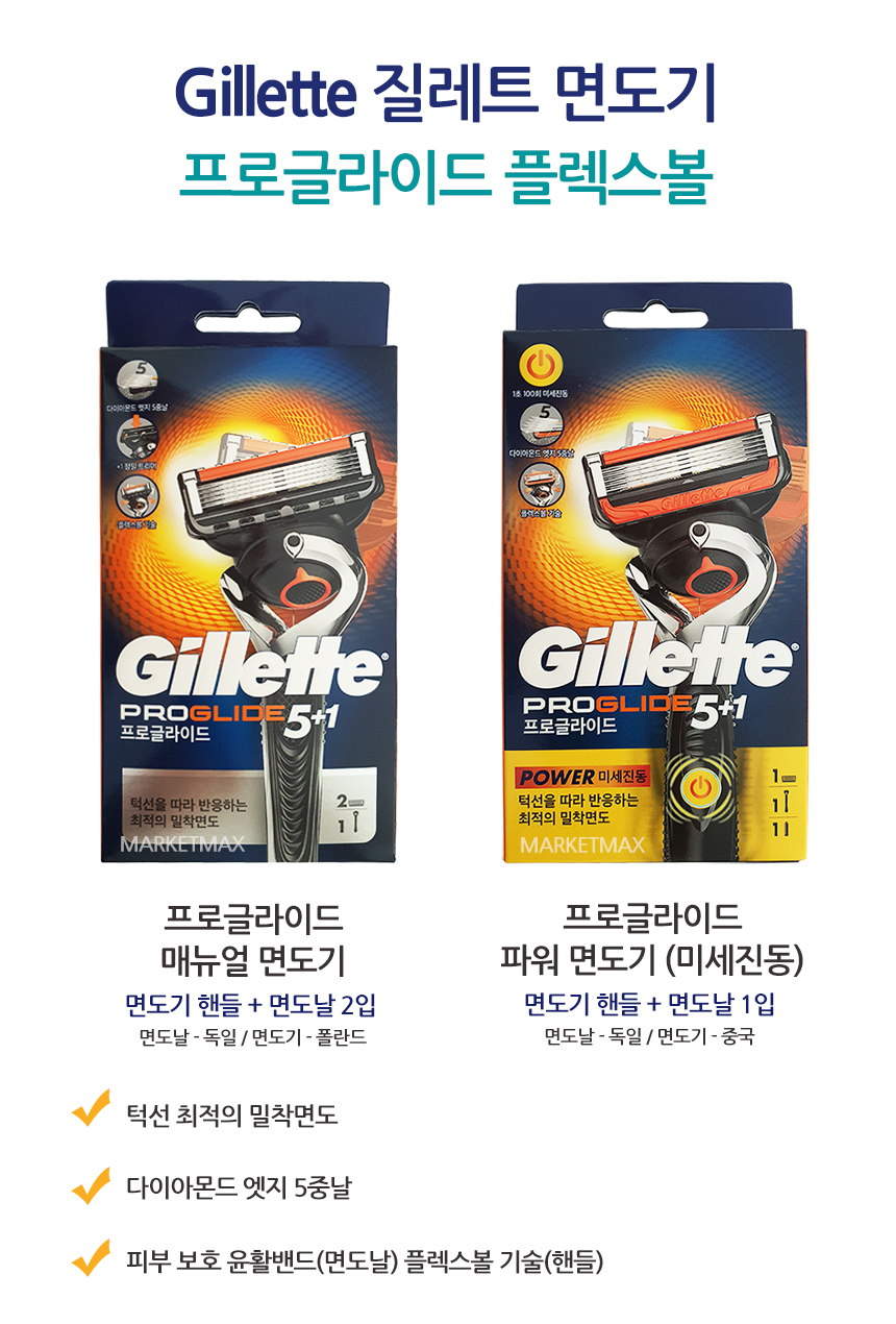 [질레트] 프로글라이드 면도기 매뉴얼 2UP (본체1개/면도날2개)