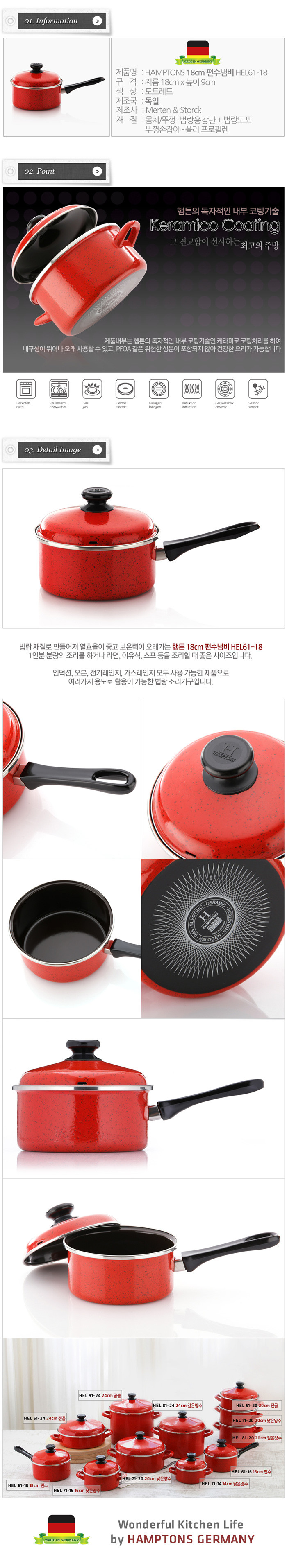 햄튼 케라미코 법랑(HEL-RED) 냄비(18CM 편수)