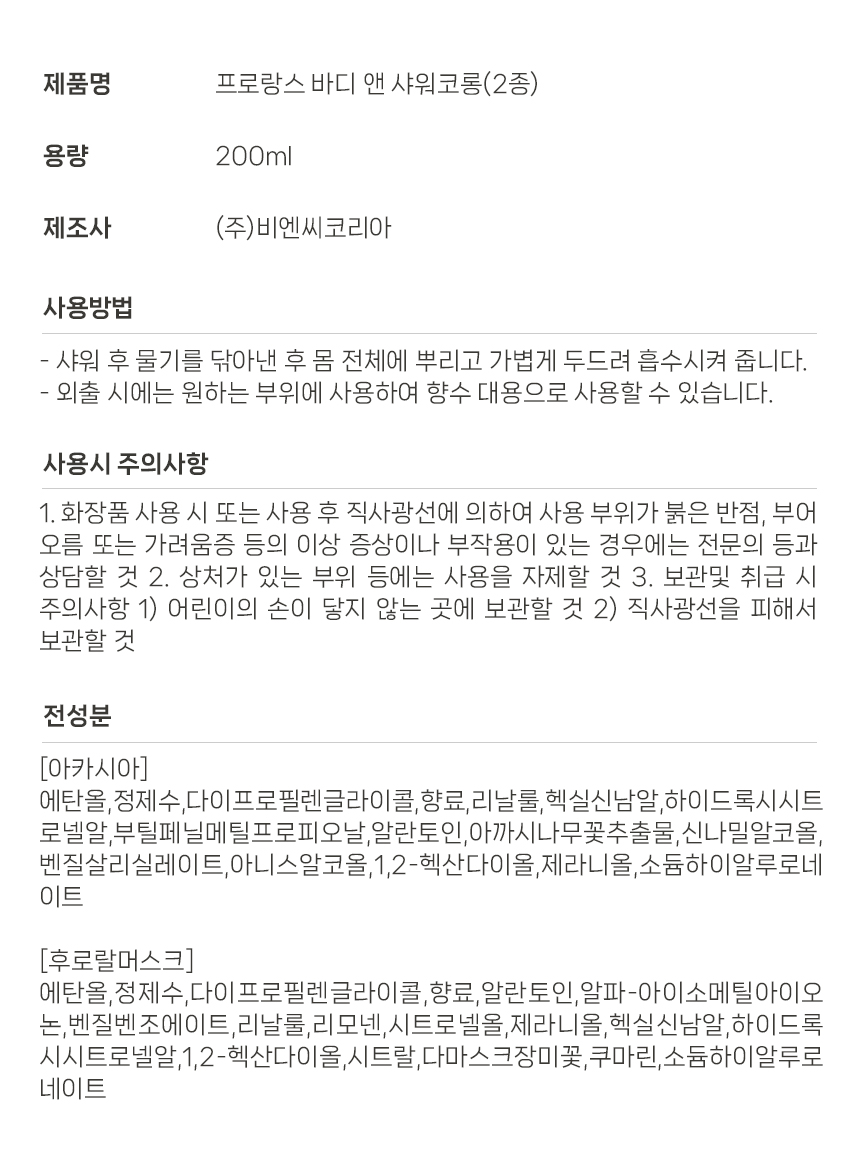 프로랑스 바디 앤 샤워코롱 / 후로랄머스크 200ml
