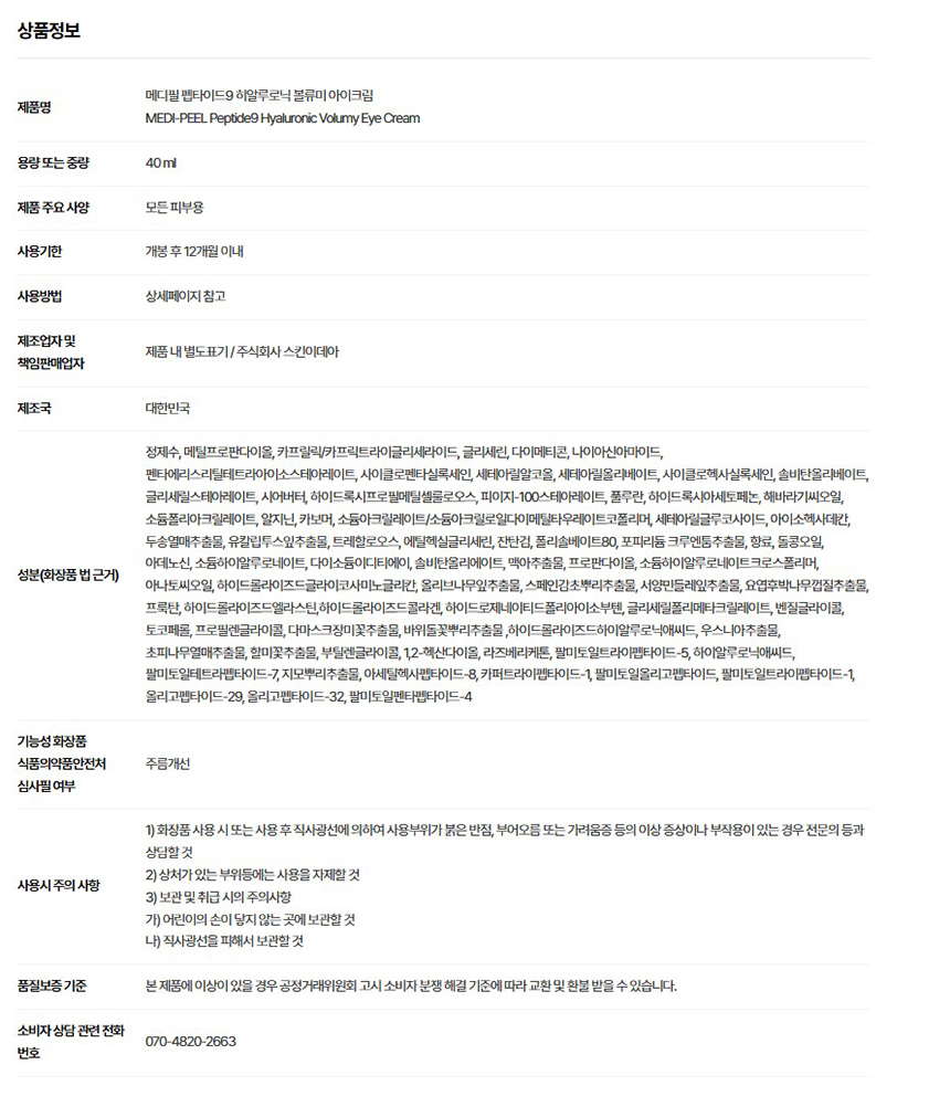 [신한카드 할인] 메디필 펩타이드9 히알루로닉 볼류미 아이크림 40ml