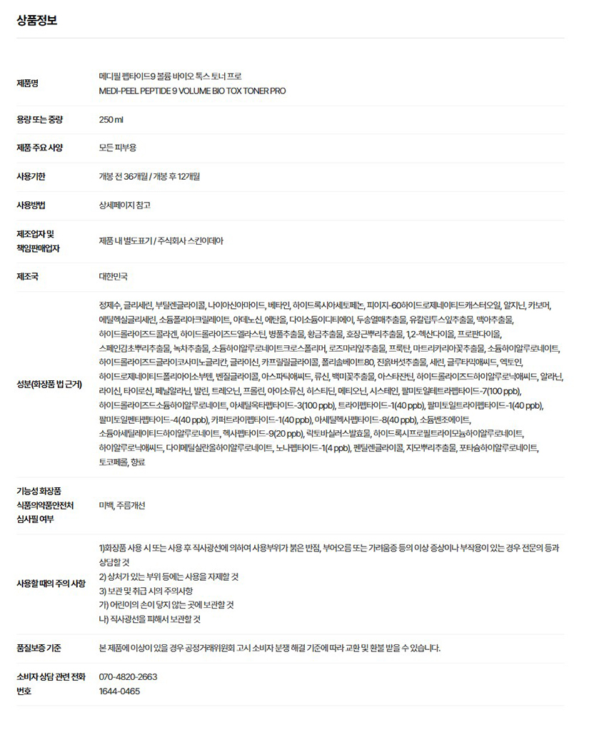 [신한카드 할인] 메디필 펩타이드9 볼륨 바이오 톡스 토너 프로 250ml