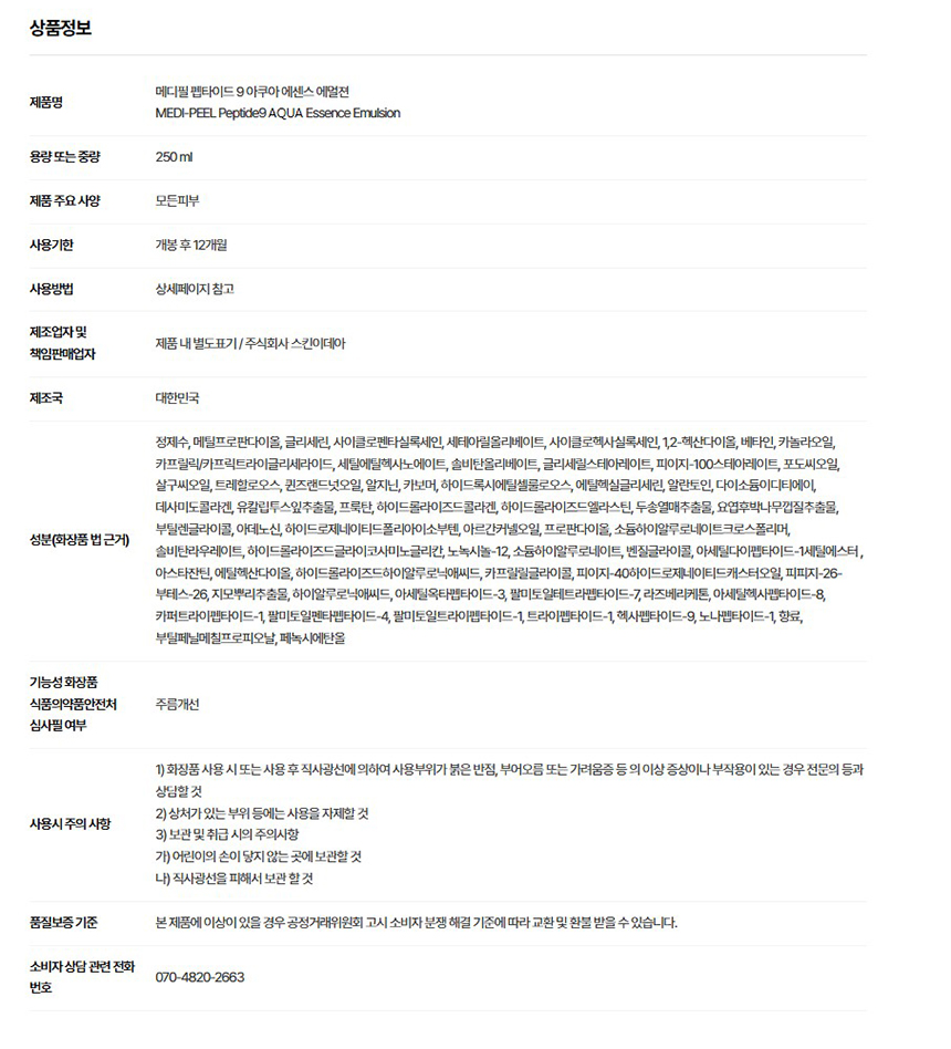 [특별할인] 메디필 펩타이드9 에멀전 250ml (아쿠아 에센스 에멀젼)