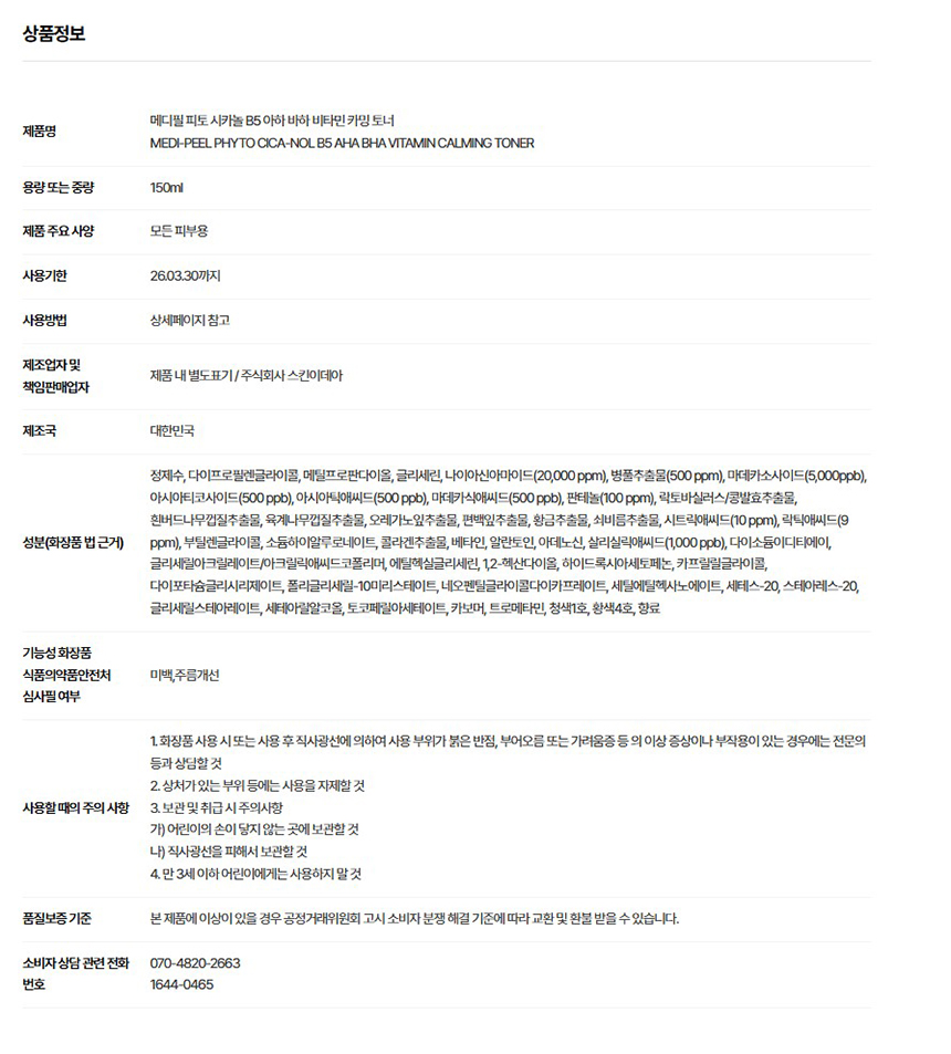 [특별할인] 메디필 피토 시카놀B5 카밍 토너 150ml