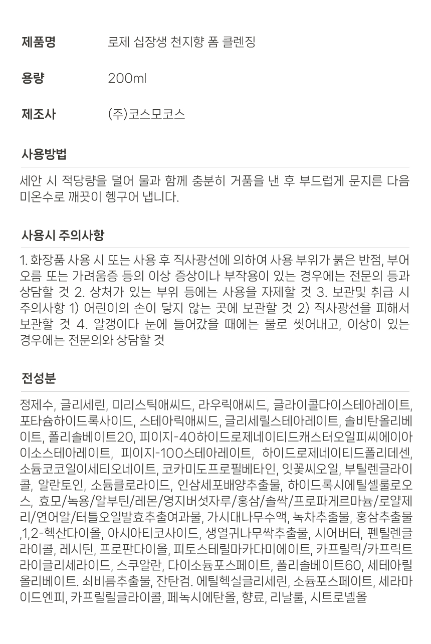 로제 십장생 천지향 폼 클렌징 200ml 한방화장품 클렌저