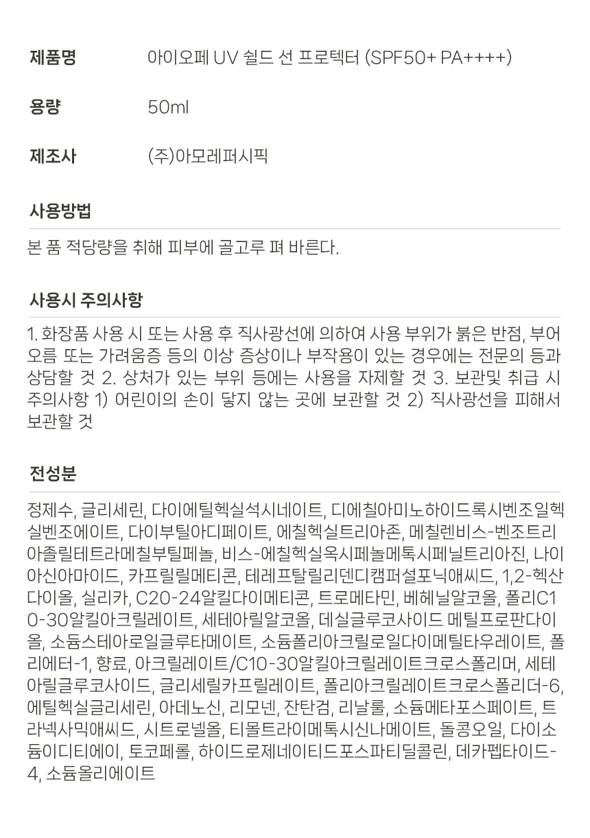 아이오페 UV 쉴드 선 프로텍터 50ml SPF50+/PA++++