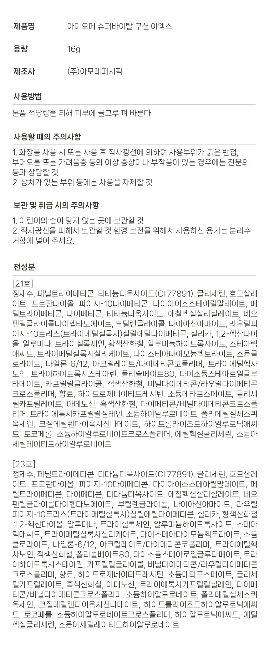 아이오페 슈퍼바이탈 쿠션 EX 리필세트 /모공 커버쿠션