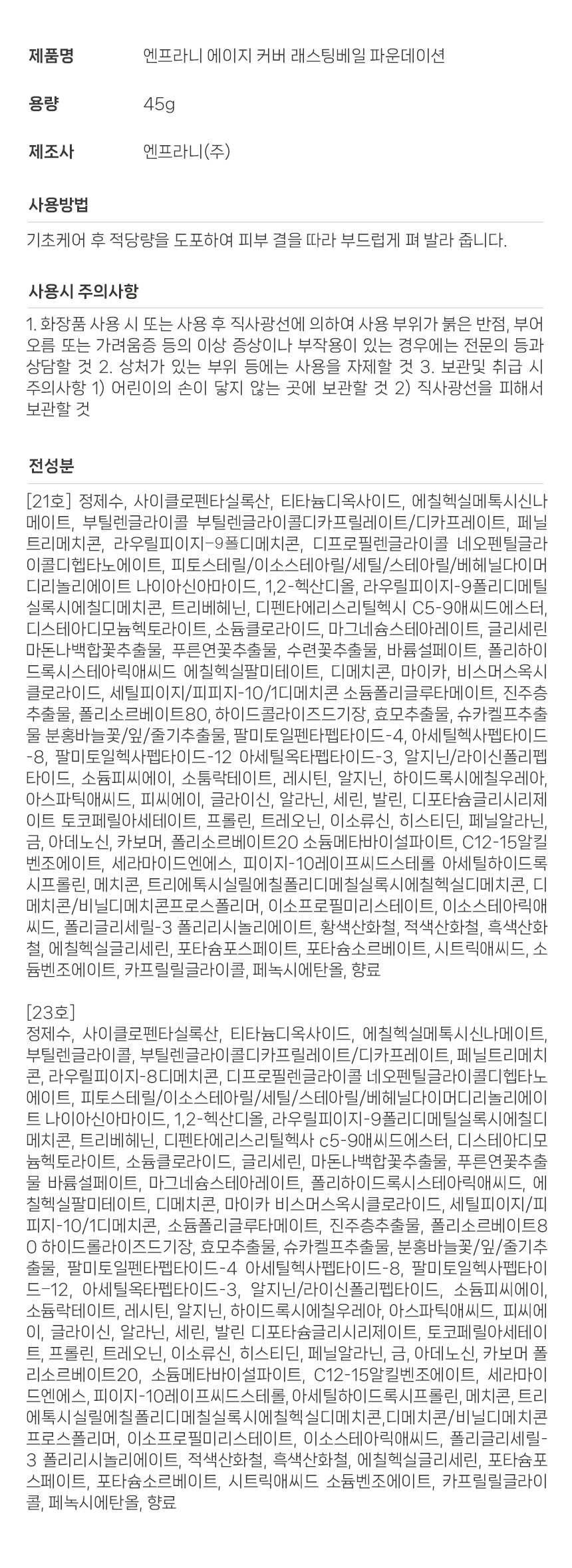엔프라니 에이지 커버 래스팅베일 파운데이션 45g 매끈한 피부결