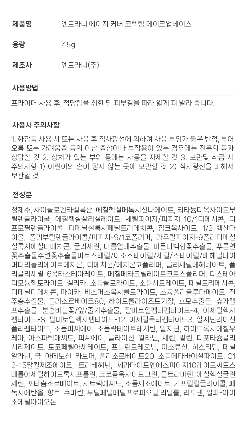 [엔프라니 에이지 커버 코렉팅 메이크업베이스 45g 2중 기능성]