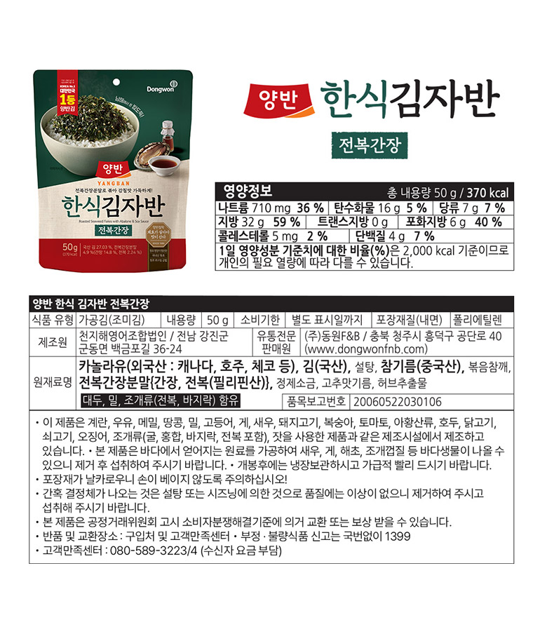 [동원] 양반 김자반 전복간장 50g x 6봉 (003911510)
