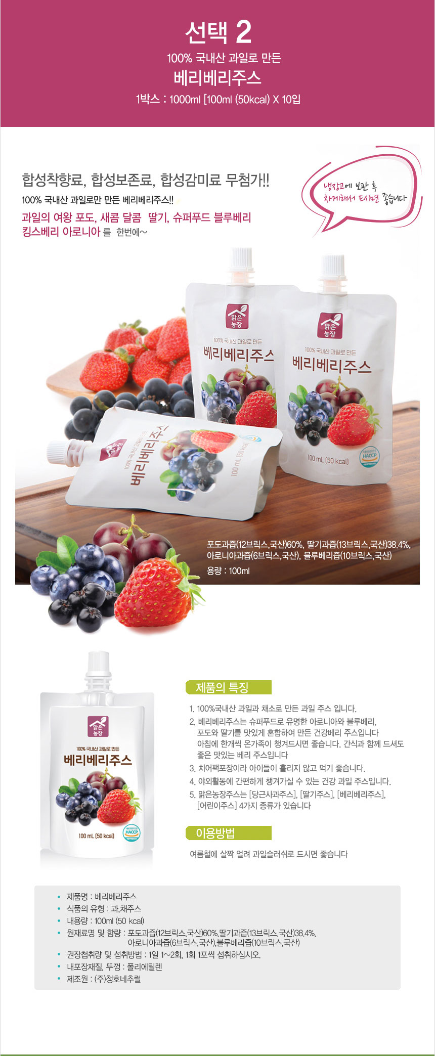 [맑은농장] 국내산 무설탕 무첨가 베리베리주스 100ml×30포
