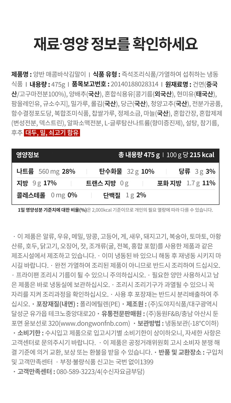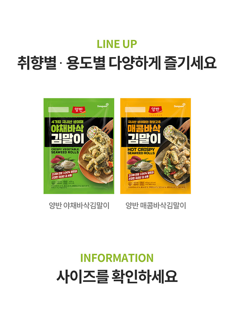 [동원] 양반 야채바삭 김말이 475g 2개 + 매콤바삭 김말이 475g 2개 (003911316)