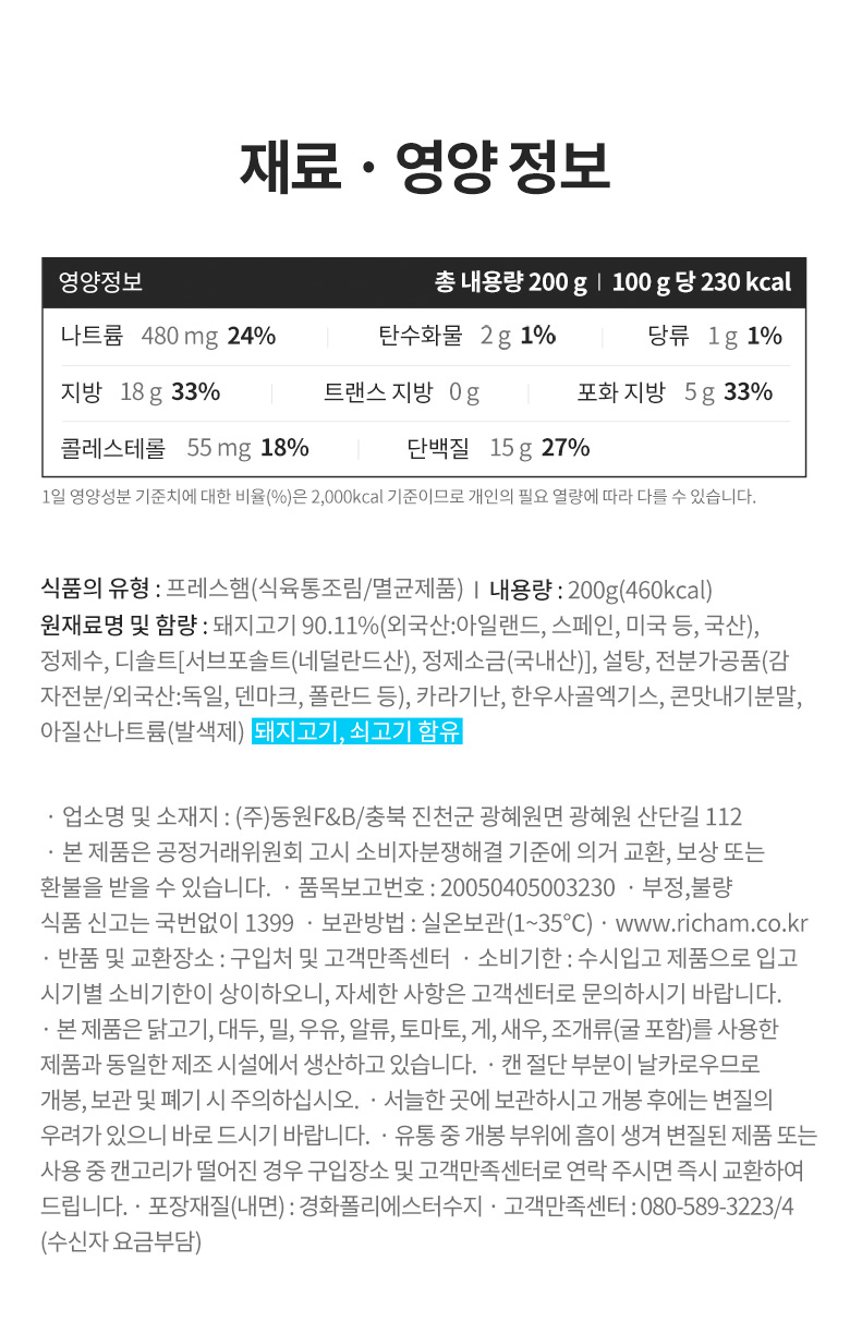 [동원] 리챔 더블라이트 200g x 6캔 (003830194)