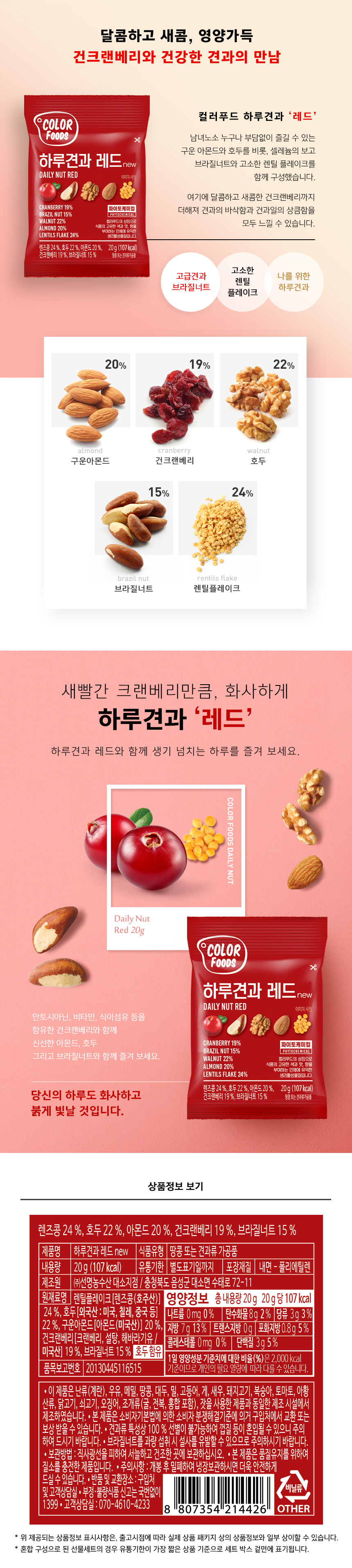 [컬러푸드] 매일매일 골라먹는 하루견과 레드 200g(20g*10봉) * 3봉