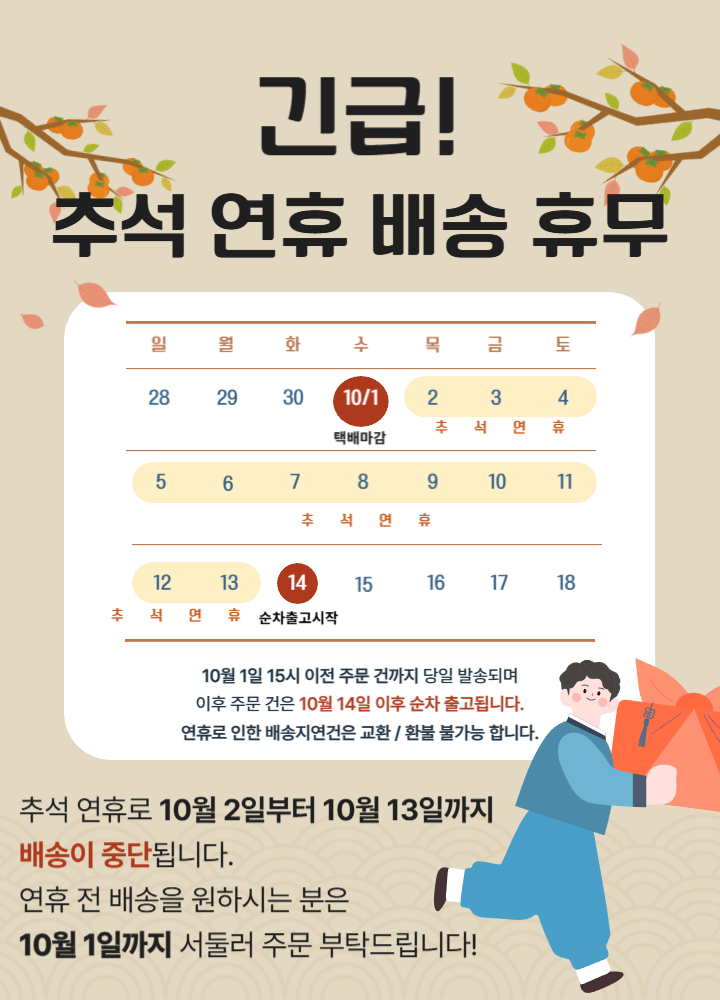 평일 오후3시이전 주문시 당일출고(주말 및 공휴일 제외)