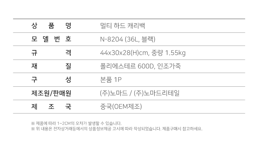 노마드 하드 캐리백 36L 블랙 수납 정리함 휴대용 멀티 체인 캠핑 용품 N-8204