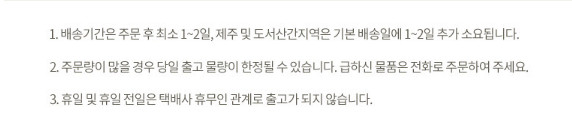 구매/배송 ※ 상품정보에 별도 기재된 경우, 아래의 내용보다 우선하여 적용됩니다.