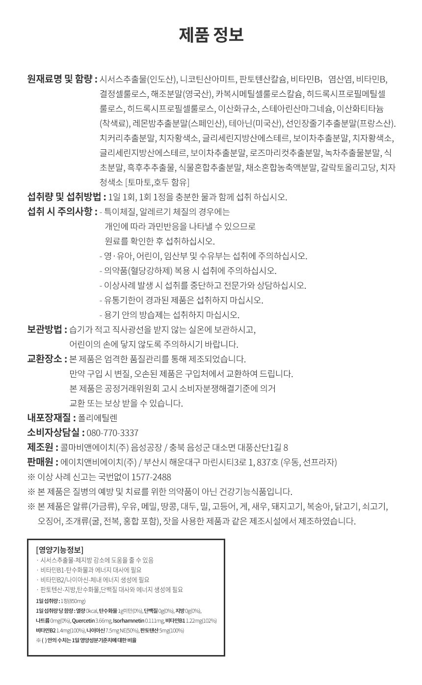 생산자 및 소재지 콜마비앤에이치㈜ 음성공장