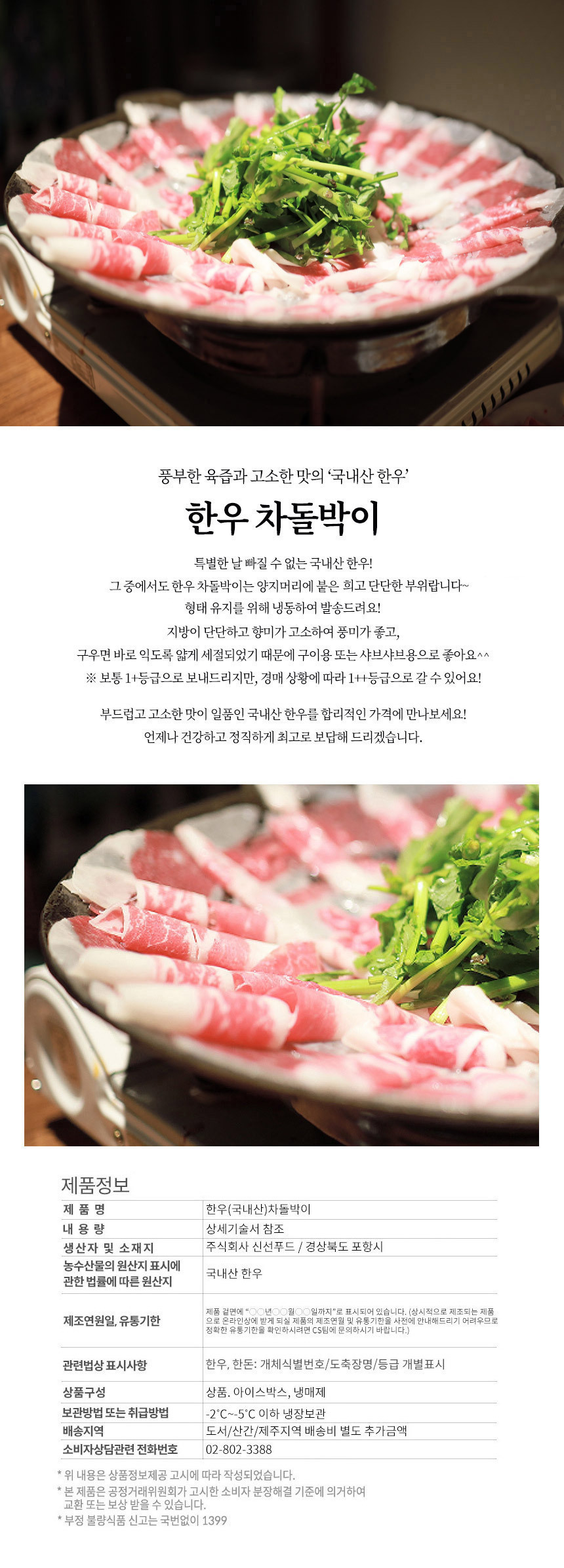 신선한 최상급 한우 차돌박이 300g 3팩 (총900g)