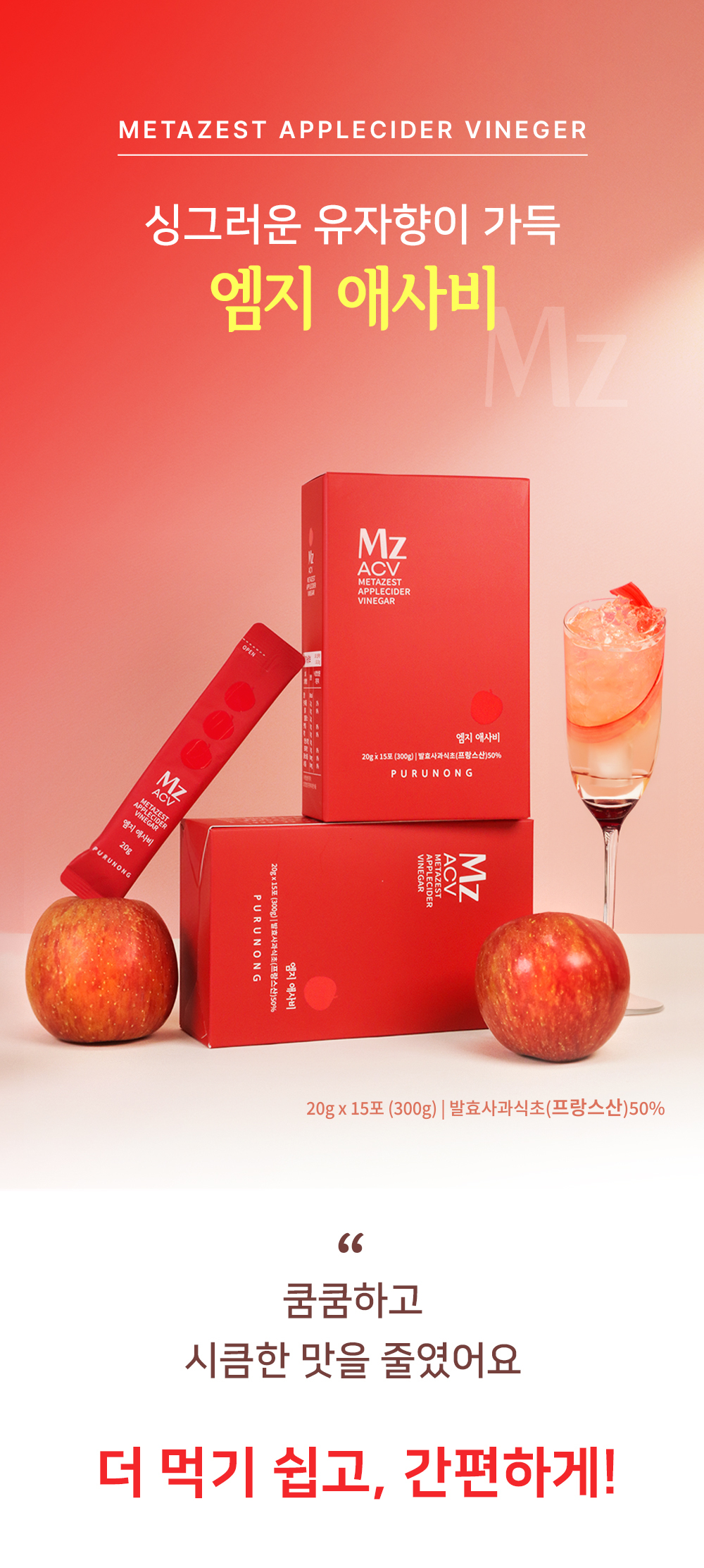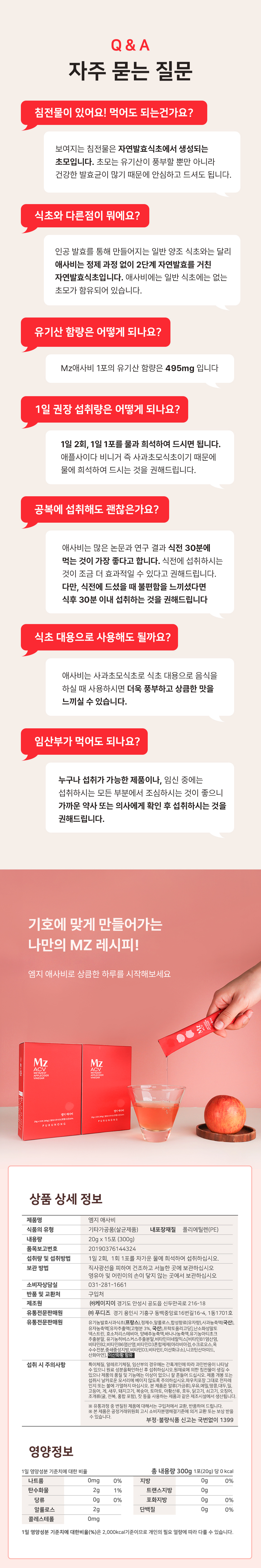 엠지 애사비 유기농 발효 사과식초 (20g*15포)(1,2,4,6박스 택)