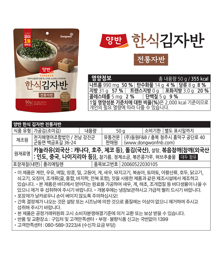 [동원] 양반 김자반 전통자반 50g x 6봉 (003911508)