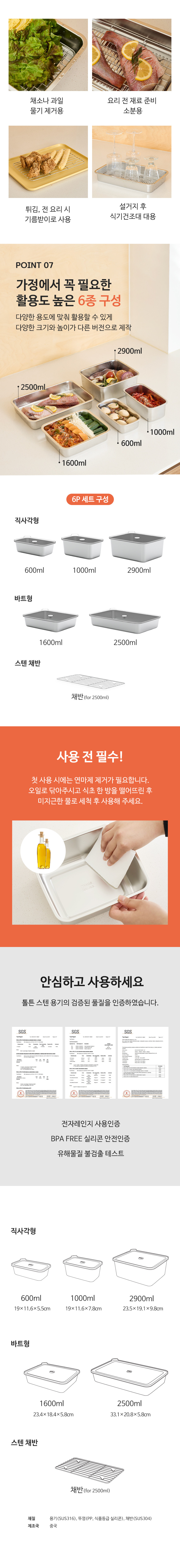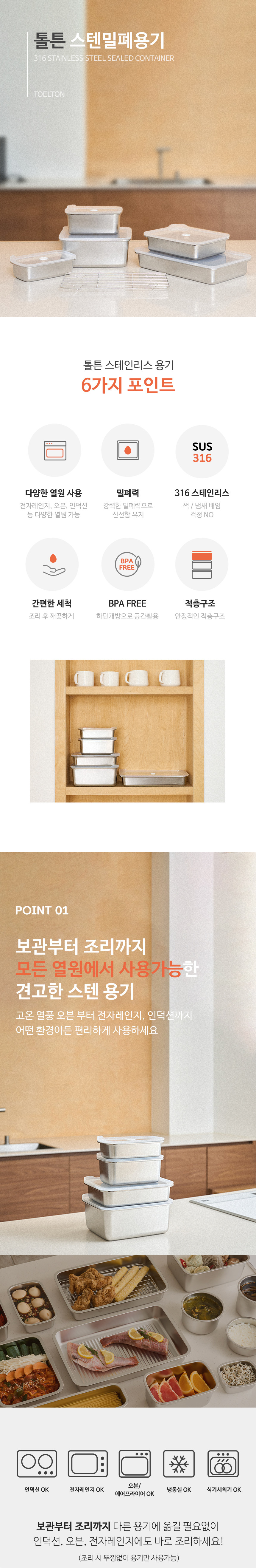 [톨튼] 렌지,오븐,인덕션에도 사용가능 SUS316 스텐밀폐용기 6종세트