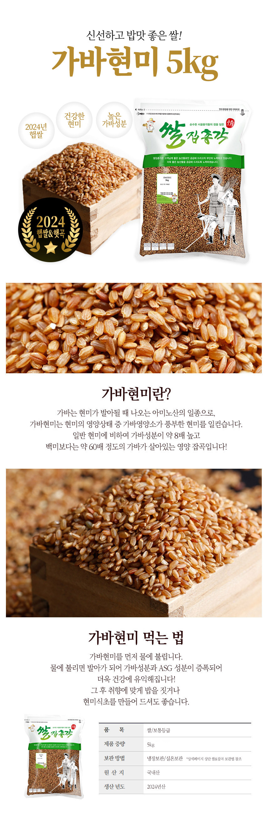 [2024년햅쌀] 국내산 가바현미 쌀 5kg