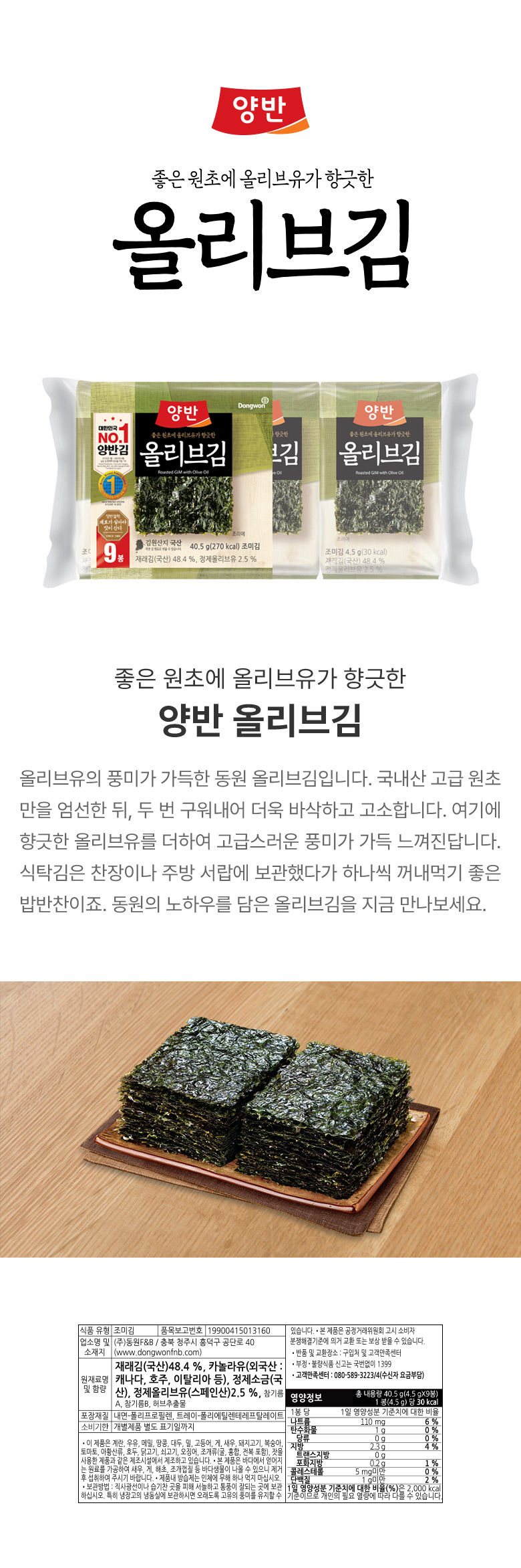 [동원] 양반 올리브김[식탁9P(9매)] x 6개 (54봉) (003911497)