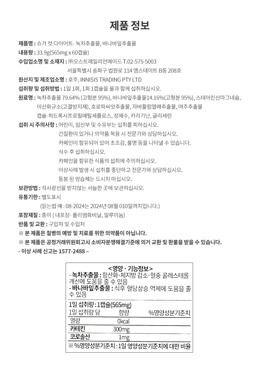 | 생산자 및 소재지 | INNISIS TRADING PTY LTD |