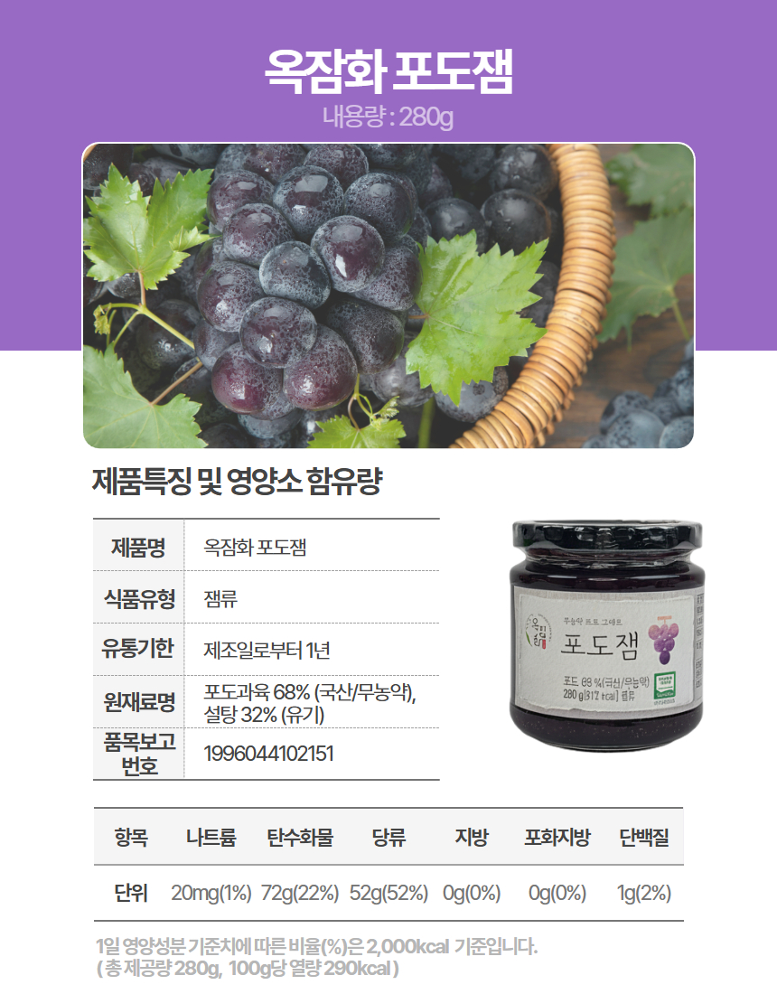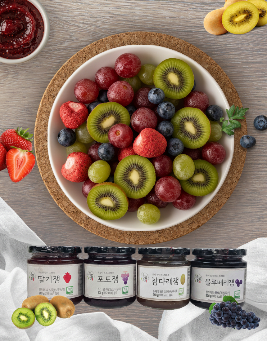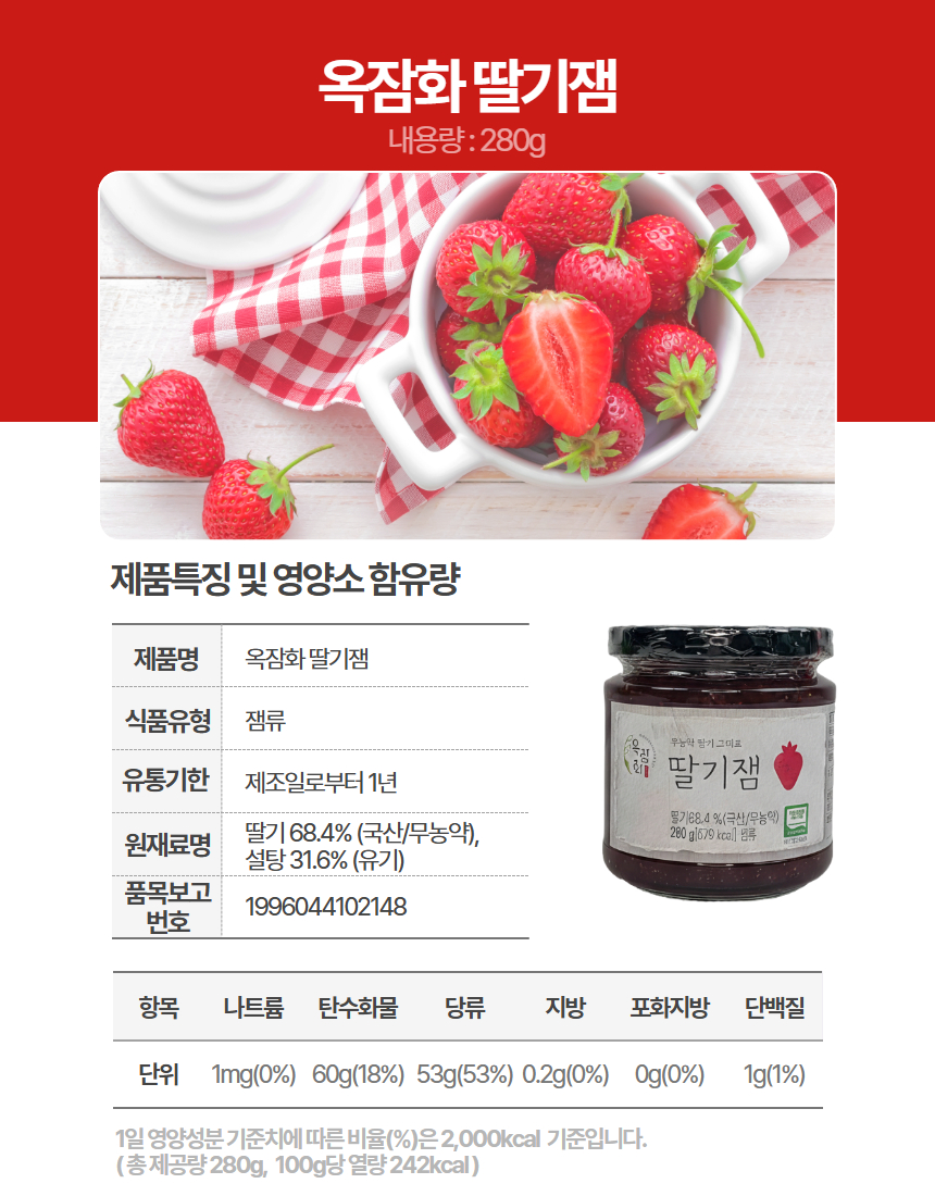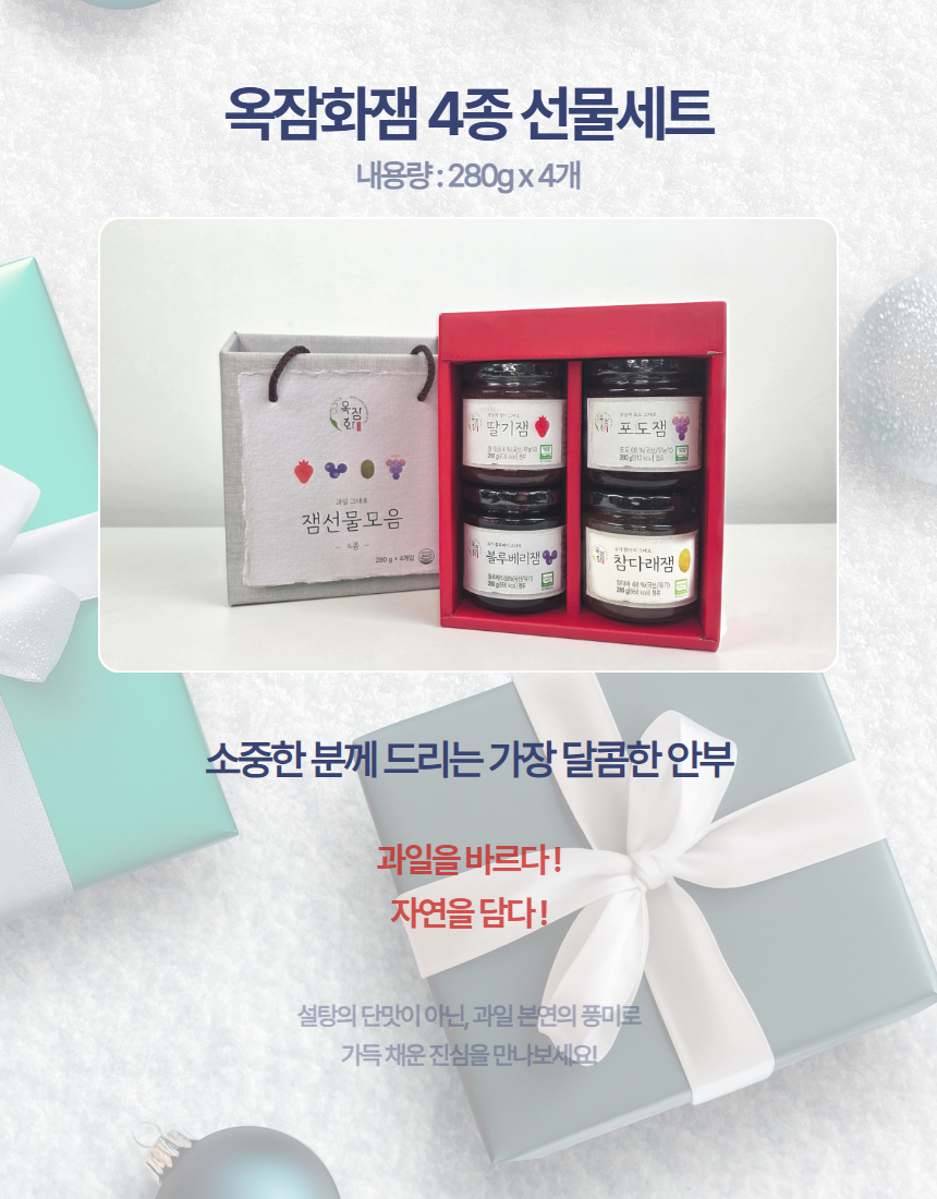 ★특가★옥잠화 무농약 딸기 그대로 딸기잼 포도잼 참다래잼 블루베리잼 280g 선물세트