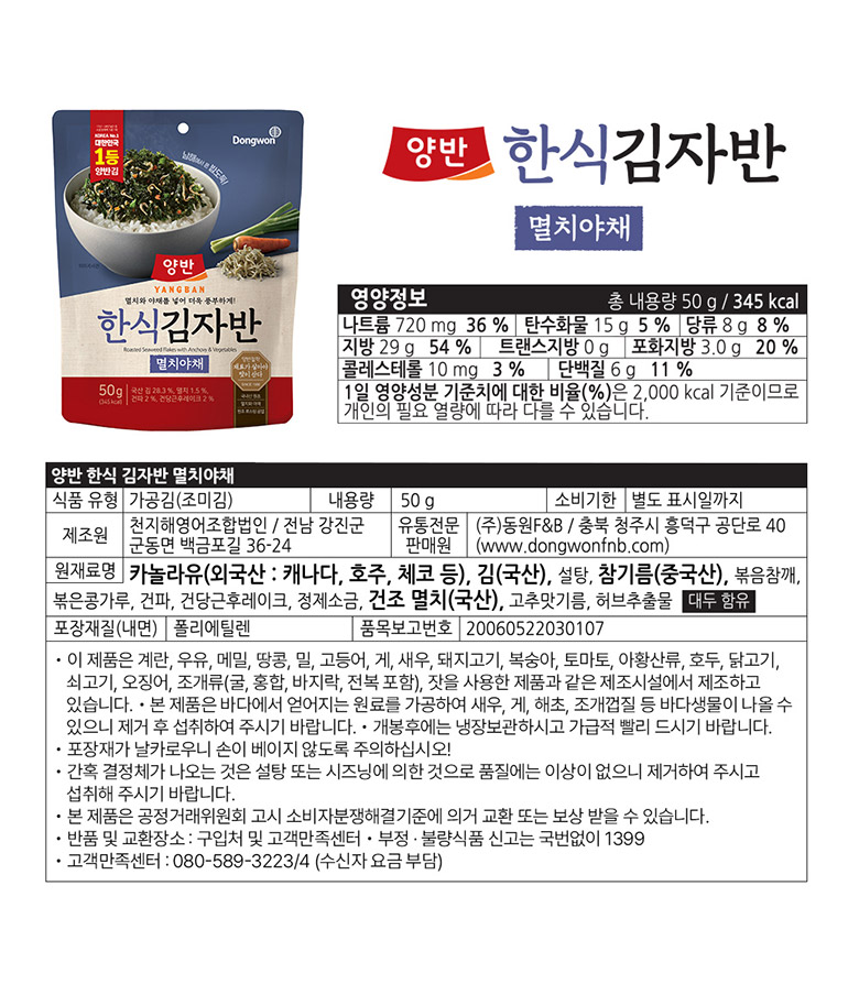 [동원] 양반 멸치야채 김자반 50g x 6봉 (003911511)