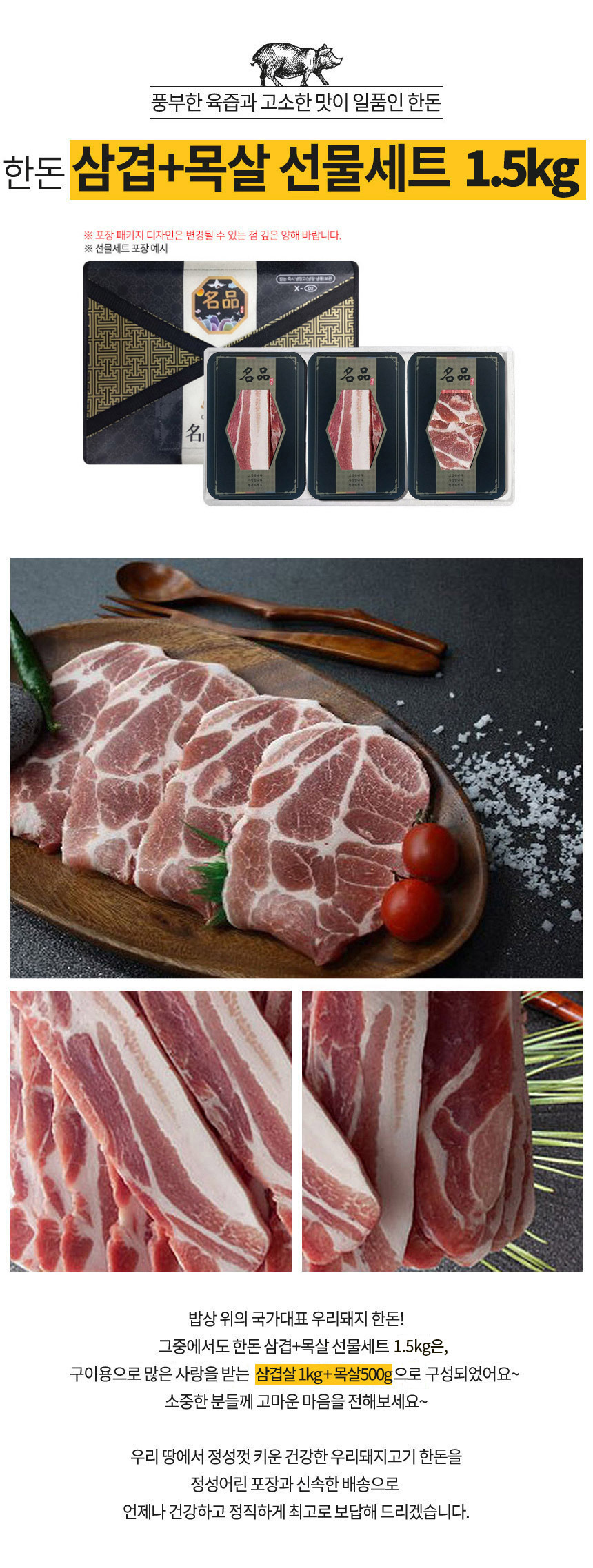 | 포장단위별 용량(중량), 수량, 크기 | 1.5kg(부위:삼겹살1kg+목살500g) |