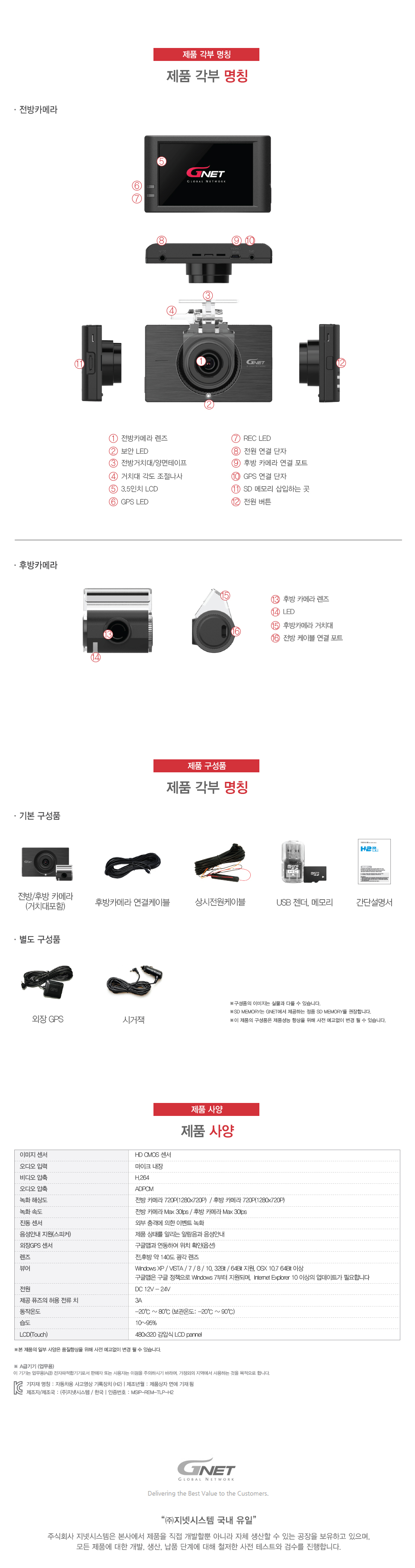 지넷시스템 H2 16GB 2채널 블랙박스(상시케이블 기본구성)