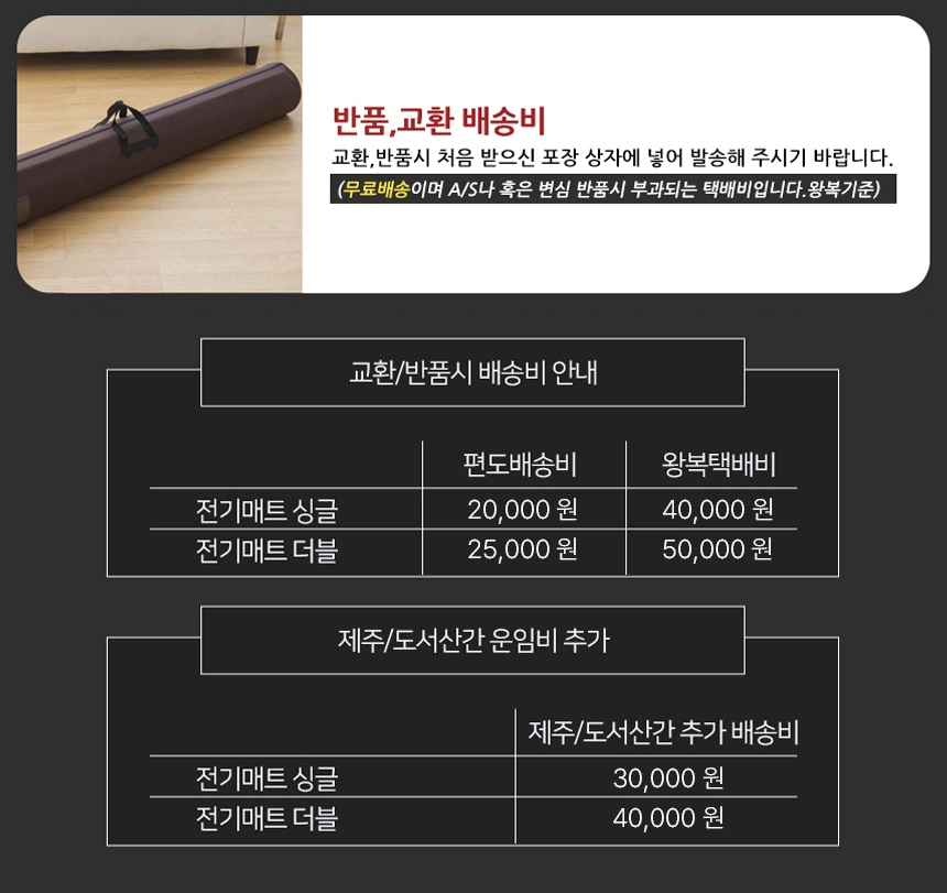 ※ 고객님의 마음이 바뀌어 교환, 반품을 하실 경우 상품반송 비용은 고객님께서 부담하셔야 합니다.