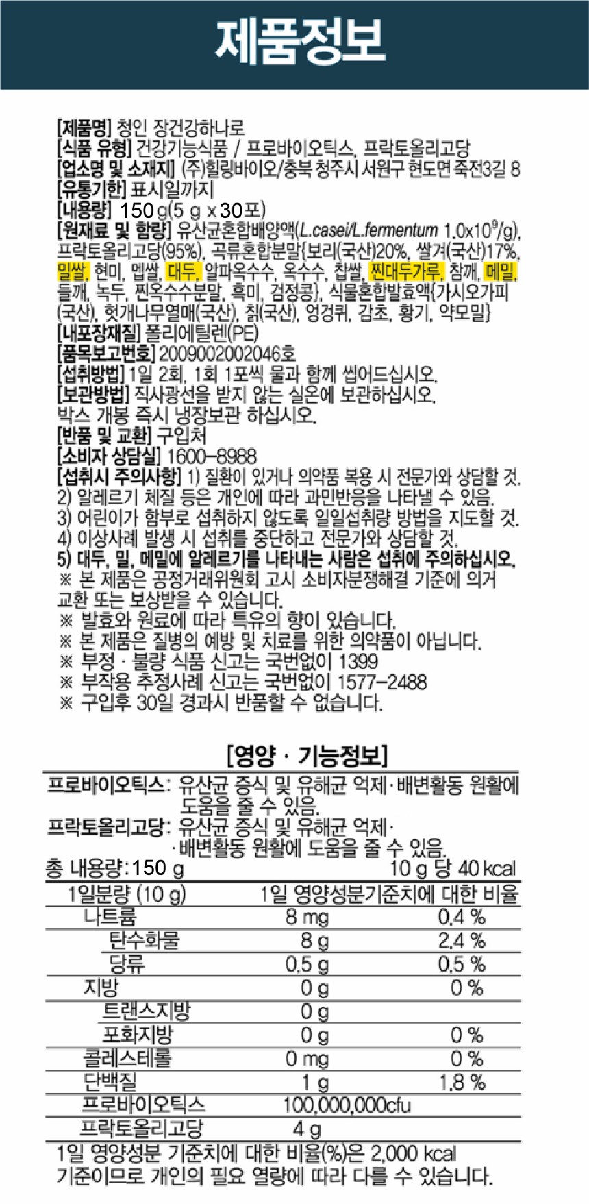 [특별할인] 청인 장건강하나로 유산균(150g) 30포