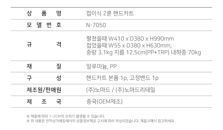 노마드 접이식 2륜 핸드카트 이동 운반 쇼핑 휴대용 캠핑 용품 N-7050