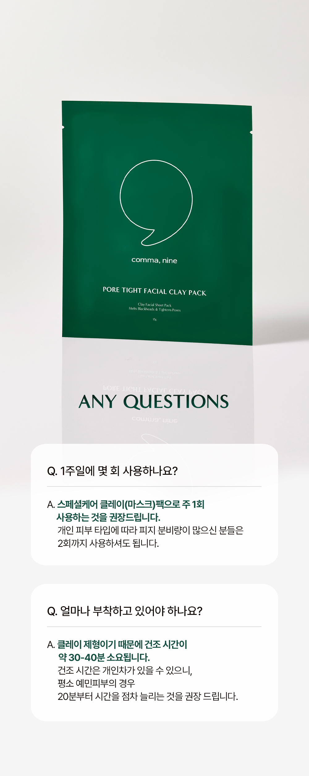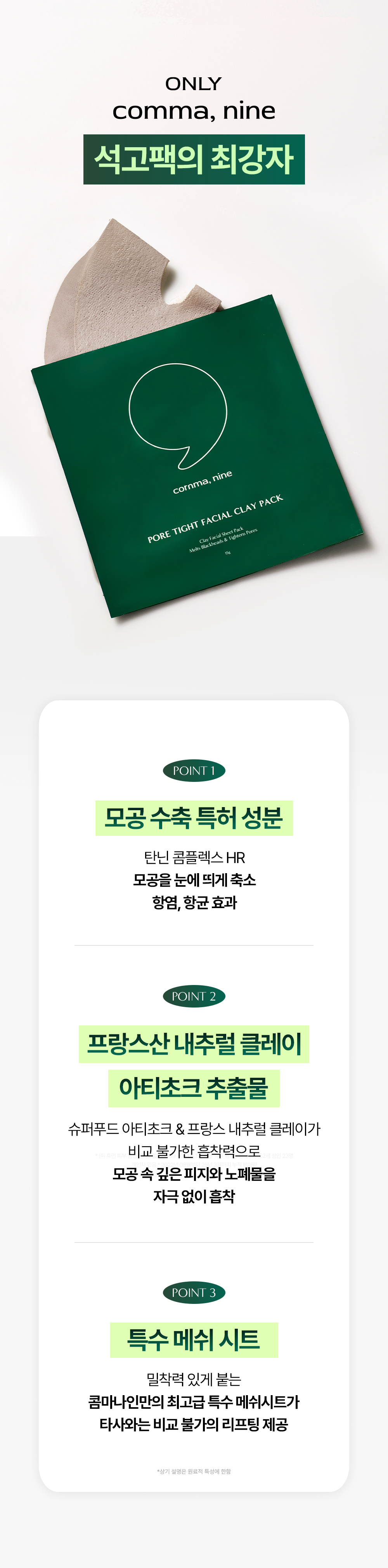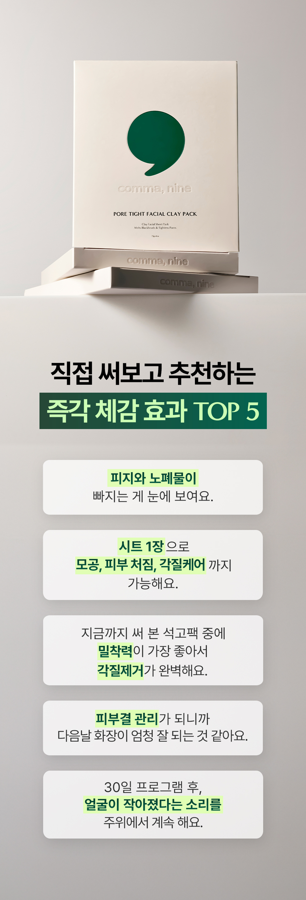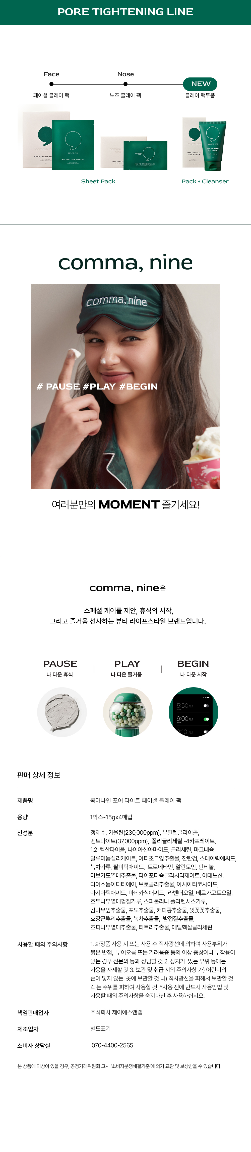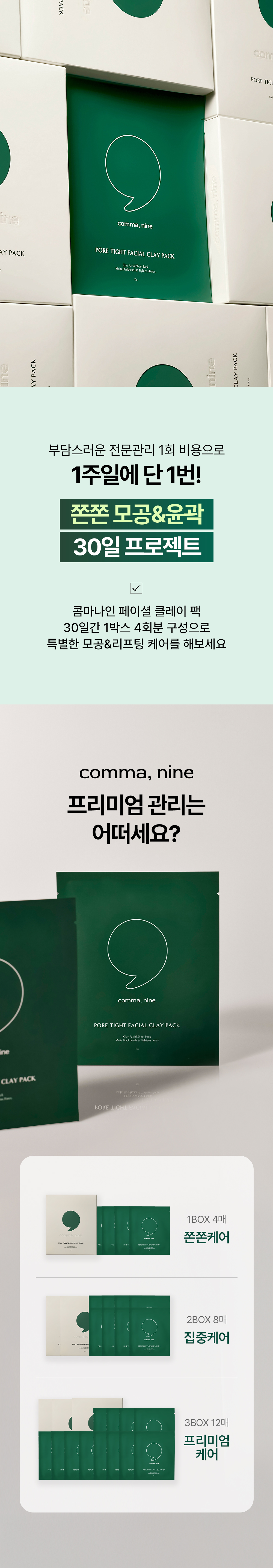 [특별할인] 콤마나인 포어 타이트 페이셜 클레이 팩 1박스(4매)