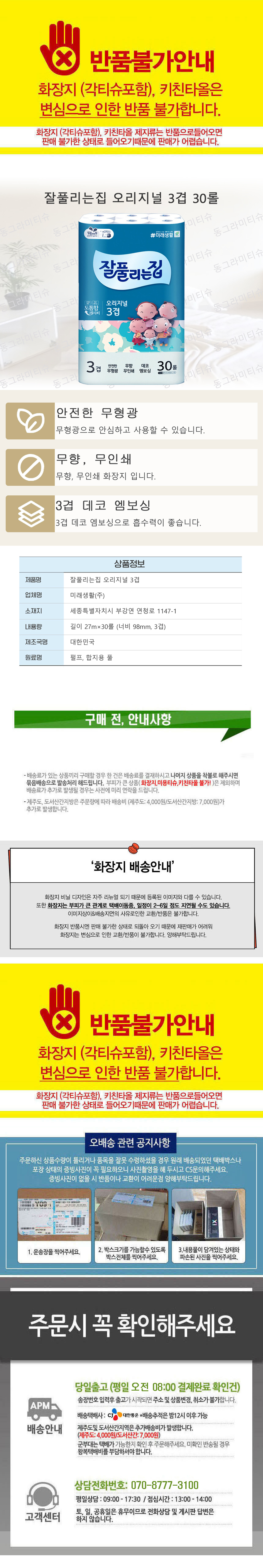 [잘풀리는집] 오리지널 3겹데코 27m 30롤*3팩