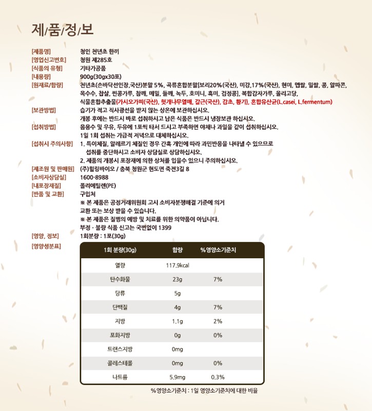 [특별할인] 청인 천년초한끼 식물성 유산균 30포