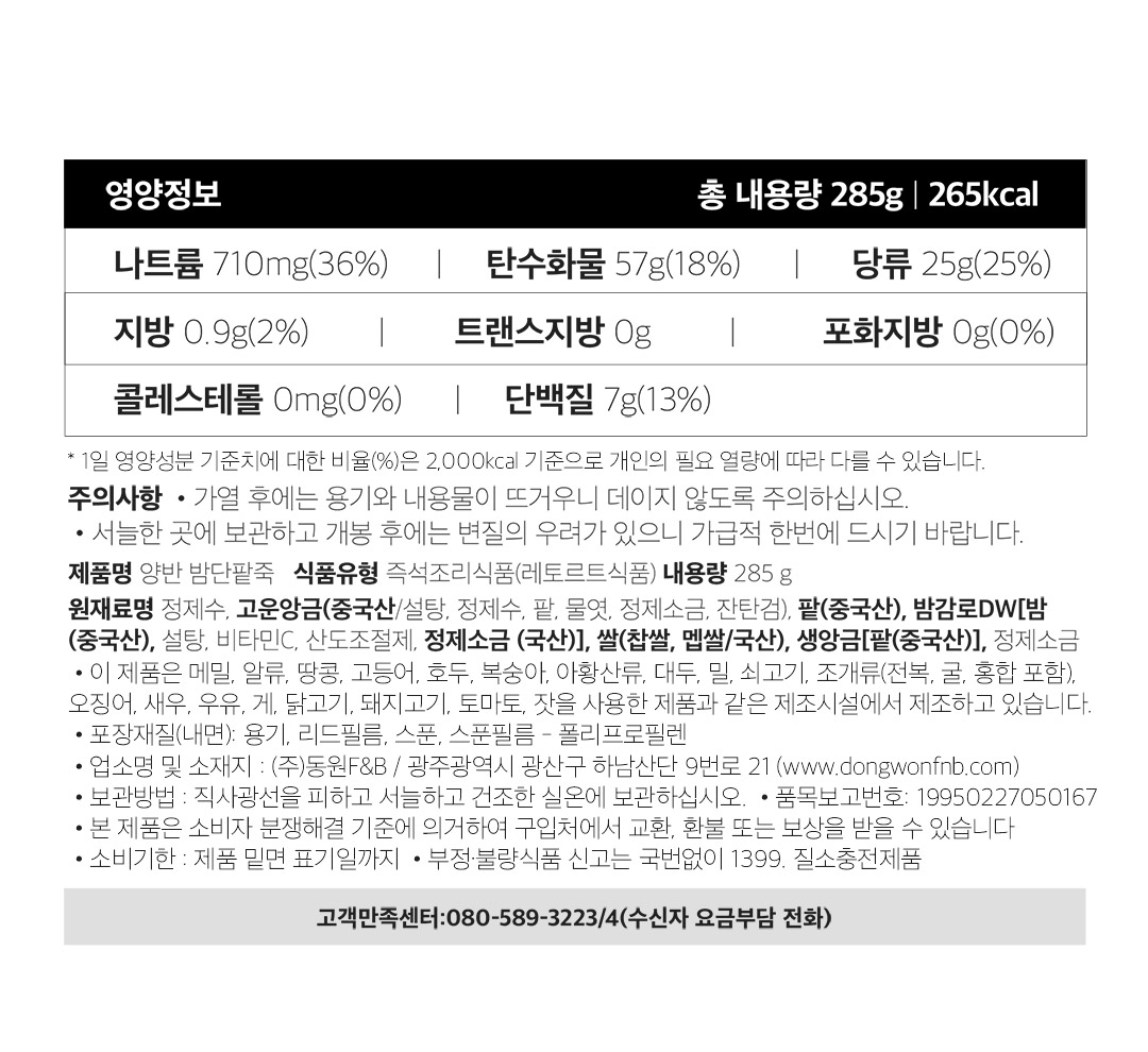 [동원] 양반 밤단팥죽 285g (용기) x 8개 (003911458)