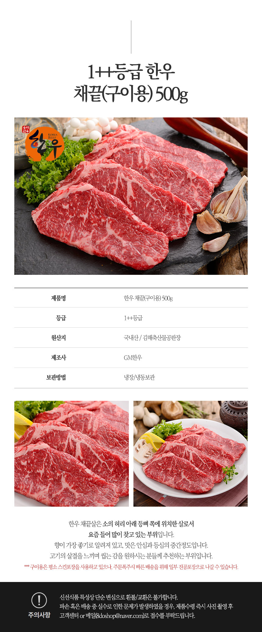 [숙성 한우] 소고기 1++등급 채끝 500g (구이용) x2팩 (총1kg)